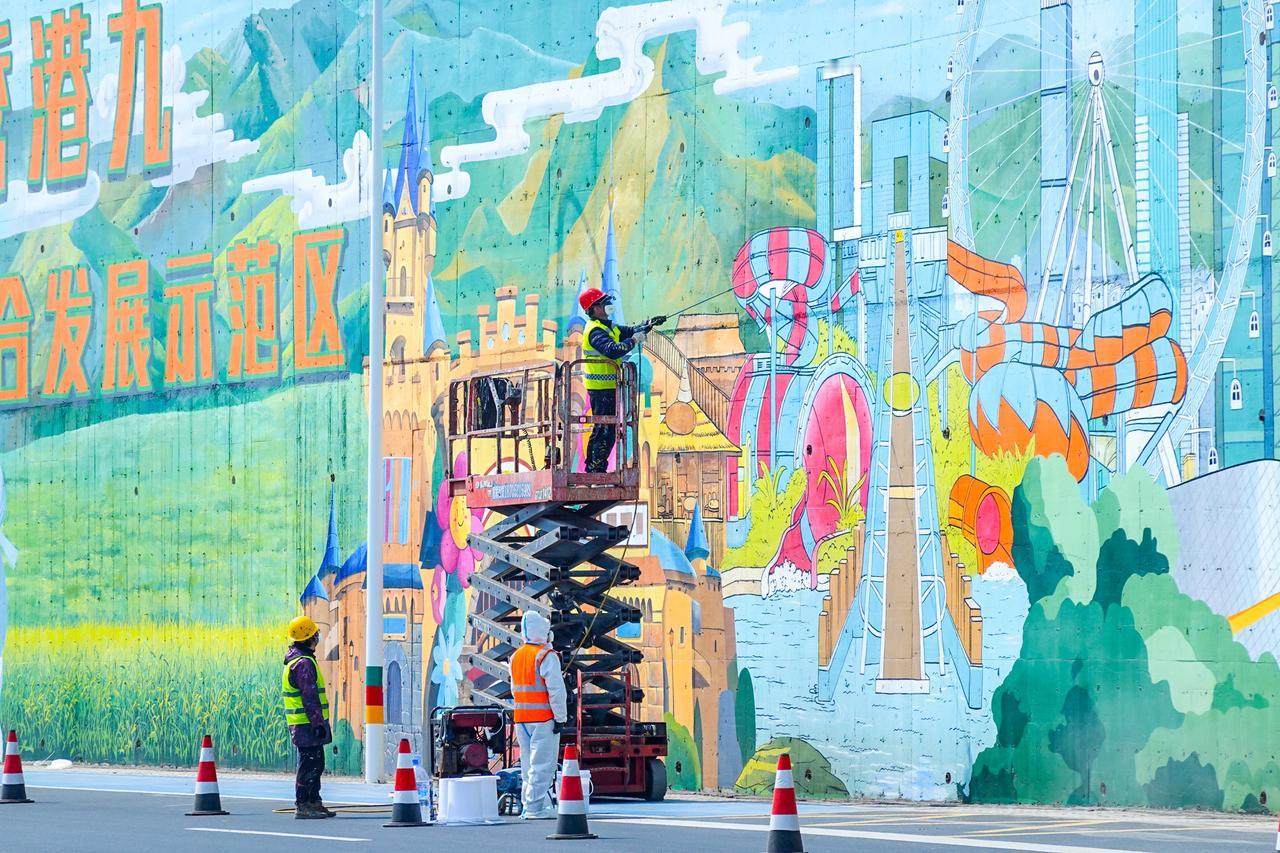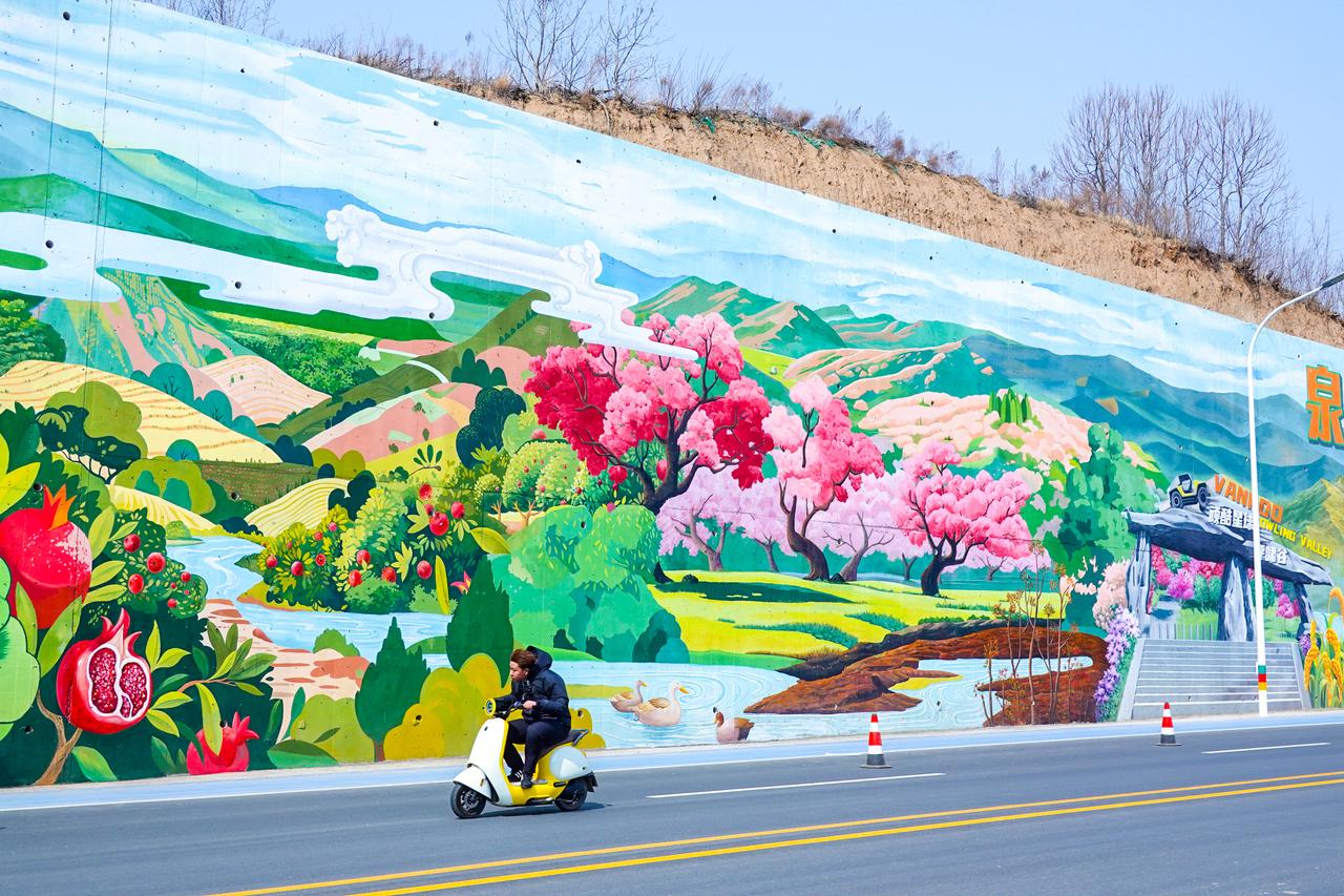 3月17日,在济南市历城区港九路西河村附近,一幅以乡村振兴为主题的巨型彩色壁画惊艳亮相。这幅绘制于新建道路西侧山体防护墙上的壁画长约100米、高约10米,成为泉城南部一道独特的文化艺术景观。美图>>-app/#/content?catid=44&id=5230245(LY)