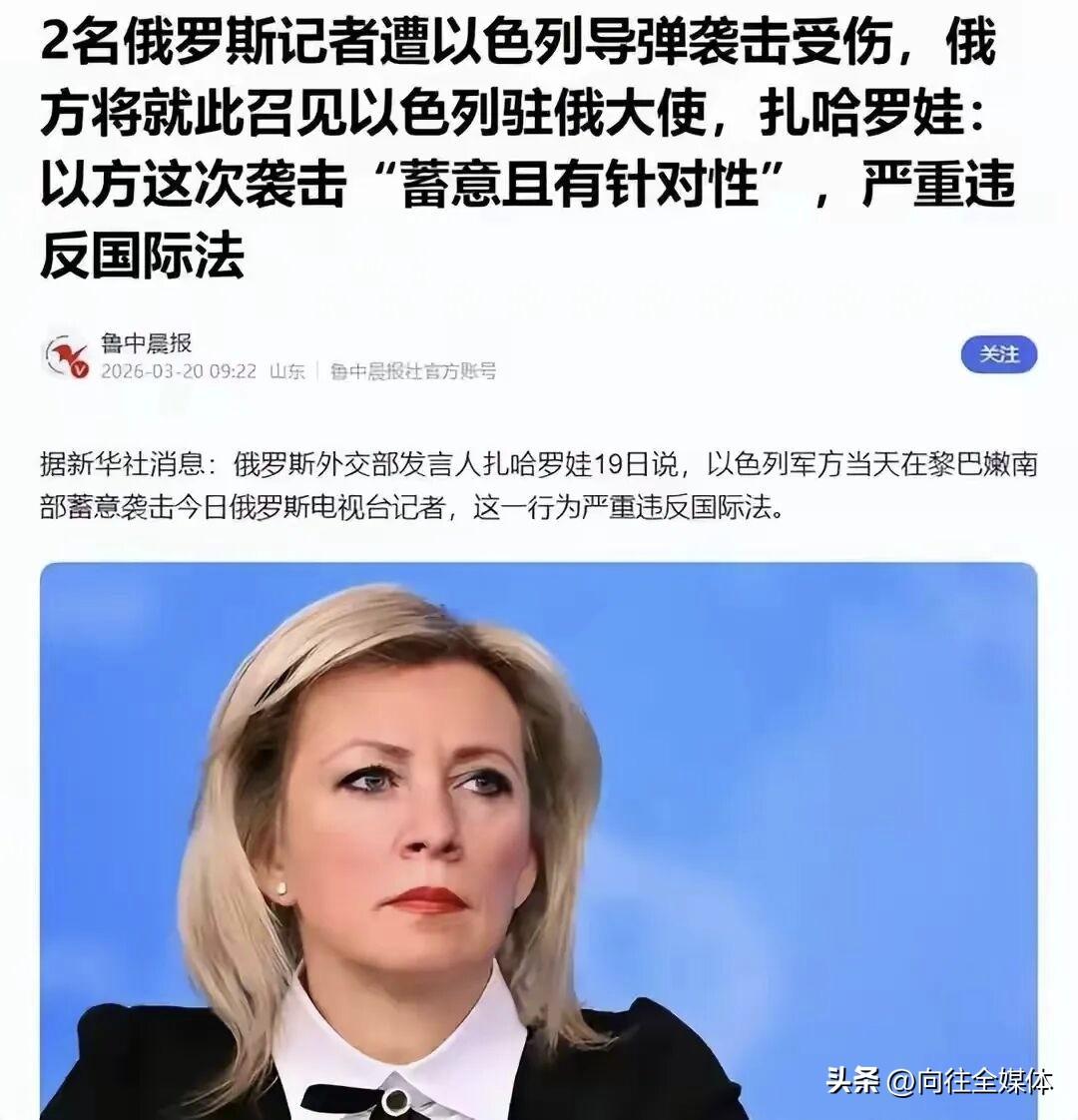 以色列军方在黎巴嫩南部,对身穿明显媒体标识的俄罗斯今日电视台记者发动导弹袭击,导致两名记者受伤。这一公然践踏国际法、针对记者的暴力行为,彻底激怒俄罗斯,普京迅速出手,展开强硬反制。