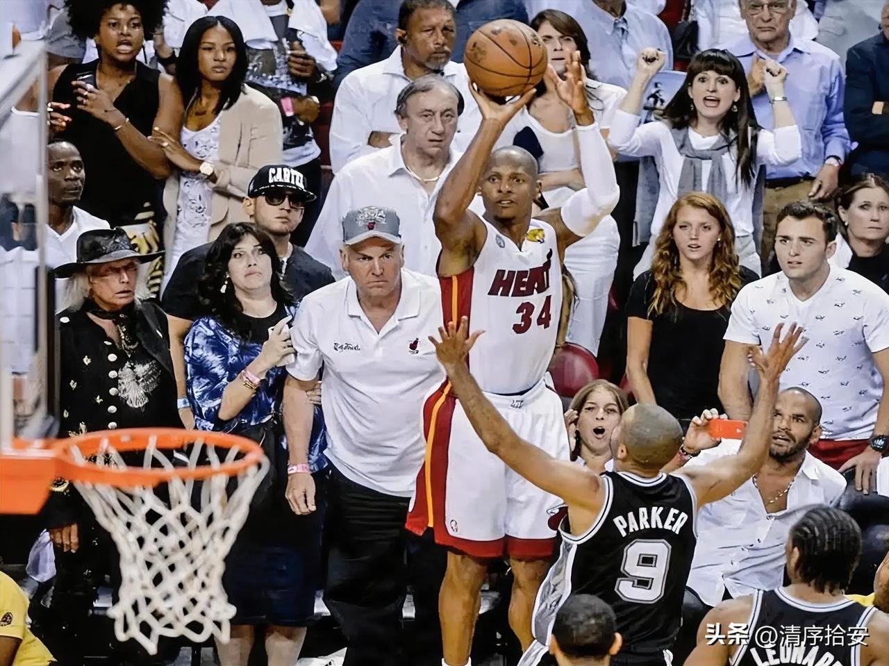 邓肯职业生涯最懊恼的一场比赛,却直接成就了热火和詹姆斯。 2013年总决赛第六场,对于邓肯来说,绝对是最刻骨铭心的遗憾。不是首轮被黑八,也不是0.4秒被绝杀,而是距离第五座总冠军只差5.2秒,那种拼尽全力却眼睁睁看着胜利从指尖滑落的挫败感,让邓肯乃至整个马刺队都特别的懊恼。 彼时的邓肯已经37岁,2007年夺冠后,马刺陷入五年低谷,外界普遍认为“GDP组合”老了,邓肯的冠军数大概就停留在四个。但2012-13赛季,马刺卷土重来,一路打进总决赛,对面是詹姆斯、韦德、波什带队,正值巅峰的热火三巨头。 虽然没人看好老迈的马刺,他们却硬生生拿下3比2的领先,手握赛点回到圣安东尼奥。只要再赢一场,就能在主场捧杯,邓肯也将拿到个人第5冠。 这场比赛,邓肯拼到极致。全场44分钟,30分17个篮板,半场就轰下25分。马刺最多领先13分,终场前28.2秒,马刺94比89领先5分,现场已经开始准备夺冠庆典,甚至有热火球迷提前离场。所有人都觉得,马刺冠军稳了。 但命运在最后28秒里急速反转。吉诺比利两罚一中,詹姆斯命中三分,随后伦纳德两罚一中。最后一攻,詹姆斯三分不中,波什抢下进攻篮板,传给底角的雷·阿伦——那记载入史册的绝平三分应声入网,比分96平,留给马刺5.2秒。马刺仓促的最后一攻未果,比赛进入加时。士气高涨的热火,在詹姆斯和韦德的带领下,顺势拿下比赛。马刺两天后又在抢七中告负,眼睁睁看着热火完成两连冠。 很多人记住的是雷·阿伦的救命三分,但对邓肯而言,最让他耿耿于怀的,是自己在最后时刻错失的两个近在咫尺的上篮。终场前49秒,马刺领先2分,邓肯低位单打比他矮了10公分的巴蒂尔,转身近距离上篮——这是他整个生涯投进过成千上万次的球,却弹框而出。他自己抢下篮板,补篮,又没进。一向喜怒不形于色的“石佛”,狠狠拍了一下地板。那一声闷响里,藏着所有的自责与不甘。 赛后邓肯主动揽下责任:“我做了一些错误的决定,投丢了一些本该进的球。”邓肯的职业生涯里,有过被费舍尔0.4秒绝杀,也有过被灰熊黑八,还成就过麦迪的35秒13分,但这些失利都不及2013年总决赛G6来得遗憾。因为那是在总决赛的赛点战,是在自己的主场,离总冠军只差5.2秒,离创造球队及个人的传奇只差5.2秒。 波波维奇在更衣室里对球员们说:“把这记下来,它是一道坎。2013-14赛季,马刺卷土重来,常规赛62胜,再次杀入总决赛,对面依然是迈阿密热火。这一次,38岁的邓肯没有再让机会溜走。马刺4比1绅士横扫热火,捧起队史第五座总冠军奖杯,完成了最完美的救赎。