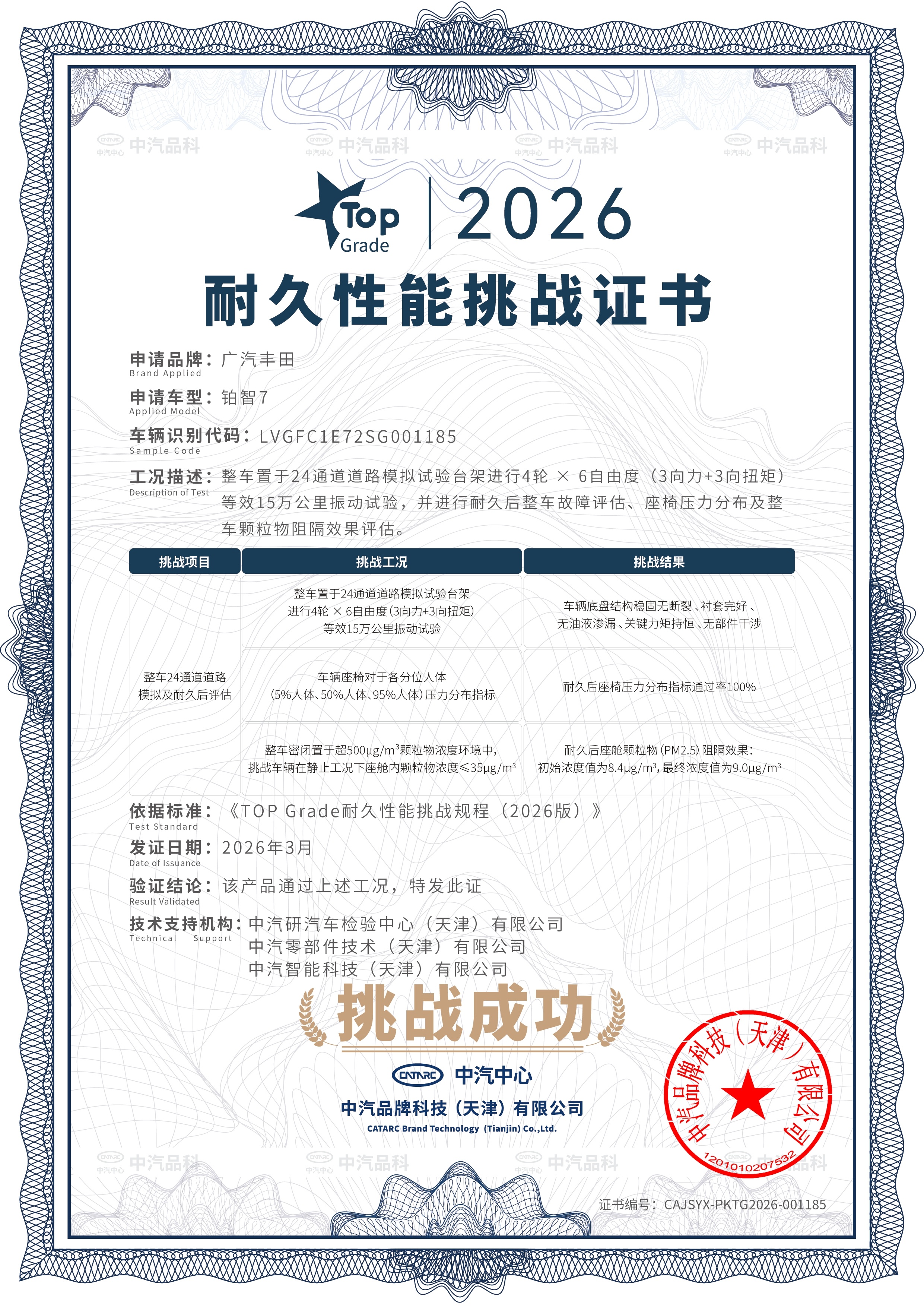 更难得的是,铂智7把从电芯本征安全、电池包密封防护,到车身刚性、约束系统,再到整车耐久可靠的完整安全链路,都扎扎实实摆在了台面上。难怪广汽丰田敢承诺“厂家三担责”,这份底气,是实打实测出来的,确实够硬核。