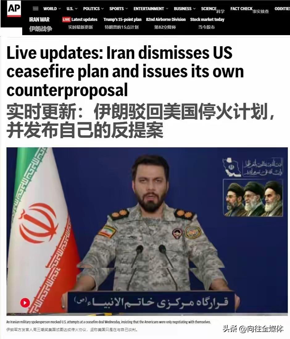 就在战局白热化之际,美国突然抛出15点停火方案,提议停火一个月谈判,核心是要求伊朗弃核、限制导弹、停止支持地区武装。特朗普高调宣称谈判顺利,还推迟打击计划。