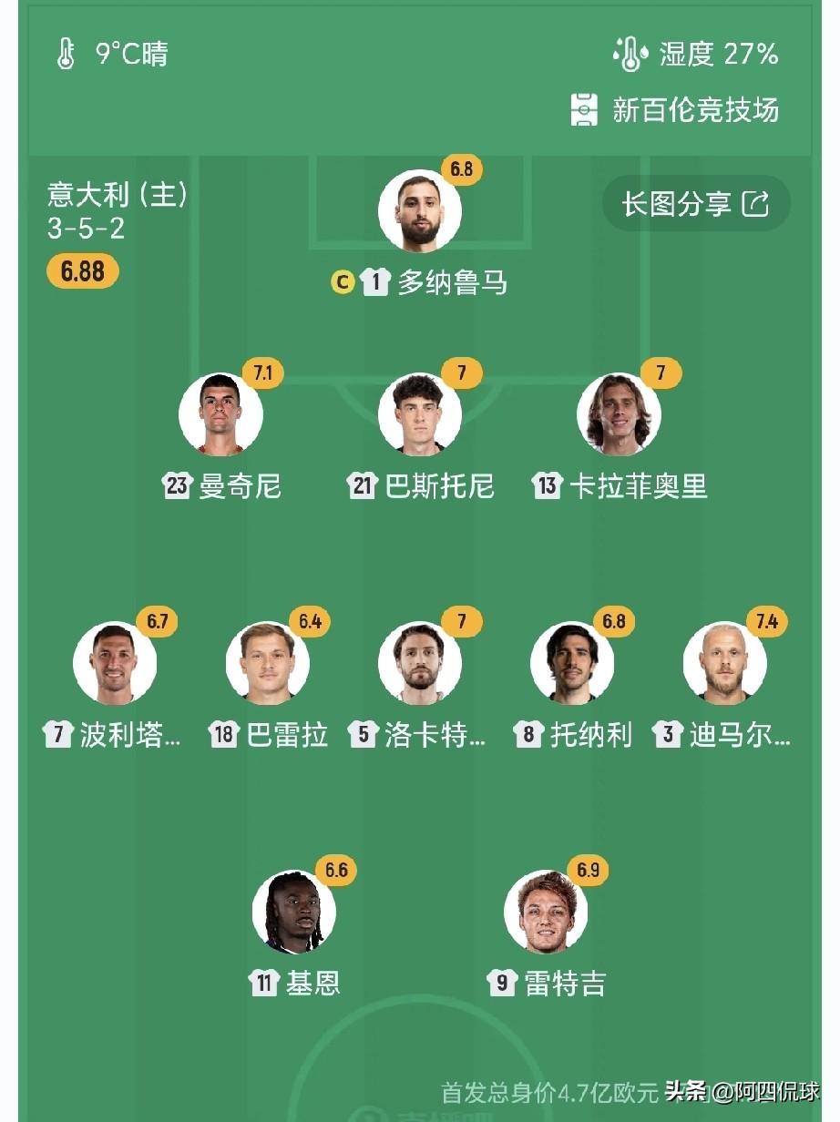 得势不得分,控球率高达71%,射门11次无功而返,连续两次倒在附加赛的意大利国家队踢得还是太紧张了。今日凌晨,世界杯预选赛欧洲区预选赛,主场作战的意大利国家队上半场和北爱尔兰队0:0握手言和。 有一说一,感觉北爱尔兰队的目标就是深度防守,伺机反击,最好是把比赛拖入点球大战。 面对北爱尔兰队的铁桶阵,就看意大利国家队的加图索有没有办法通过调兵遣将打开局面了。说句实在话,虽然意大利国家队上半场控制了比赛局面,但是并没有创造非常好的得分良机。 有一说一,除了守门员多纳鲁马,意大利国家队真的没有耳熟能详的明星球员,难怪只能踢附加赛才能晋级世界杯决赛圈。 那么问题来了,龟缩防守的北爱尔兰队有没有希望客场爆冷击败意大利国家队?