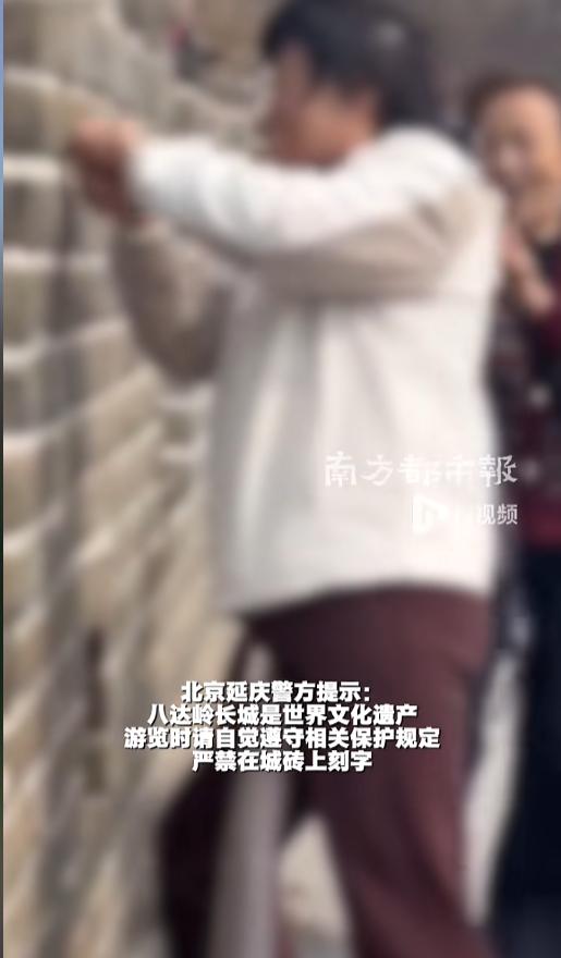 同时,警方也提醒大家,八达岭长城是世界文化遗产,请文明游玩,遵守相关的保护政策,严禁在城砖上刻字。一旦发现有刻字、偷砖等故意损毁的行为,警方将依法严肃处理!