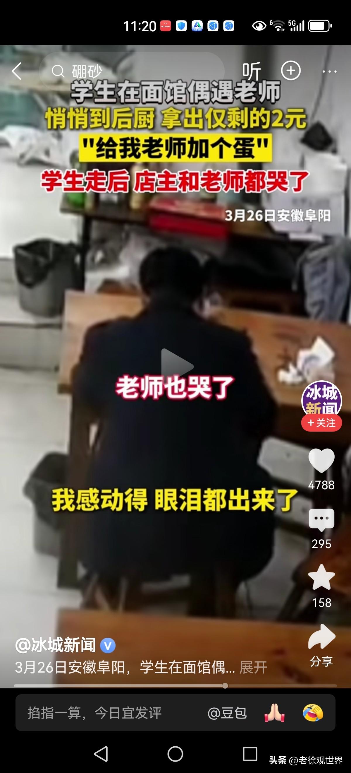 孺子可教!学生在面馆吃饭偶遇随后到来的老师。 学生吃完之后悄悄来到后厨,用自己为数不多的零花钱给老师加了一个蛋! 小小的善举,感动了老师和店主,也感动了网友!最感人的老师 暖心女老师 高中家长送饭 课堂暖心瞬间 大学生吃面 学校买面 城市学生午餐