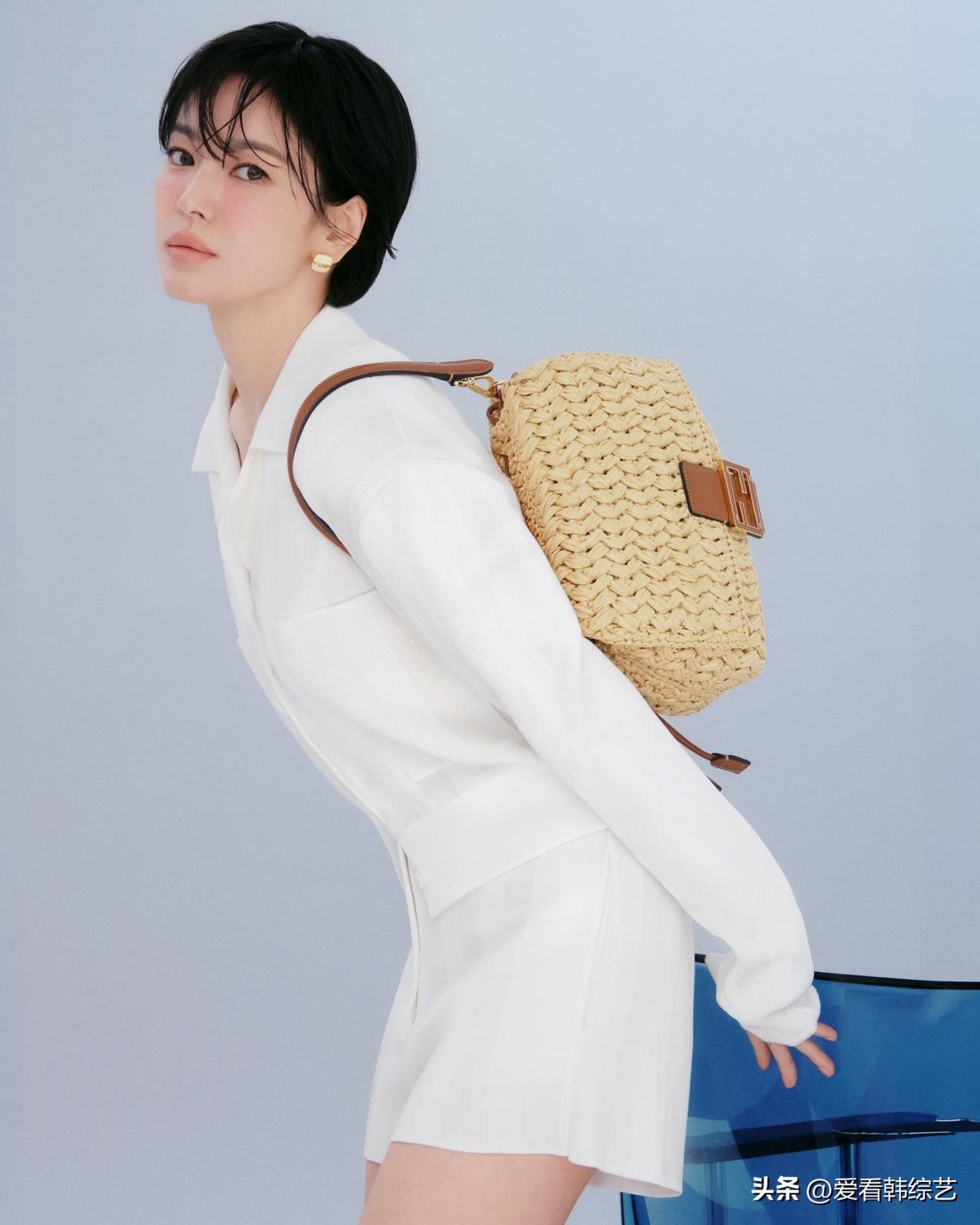25日,演员宋慧乔在自己的Instagram上上传了多张照片。公开的照片中,宋慧乔完美驾驭了该系列的白色针织上衣和短裤,营造出优雅而精致的气质。她搭配了一款手工拉菲草钩编的手袋,为整体造型增添了时尚感,令人眼前一亮。