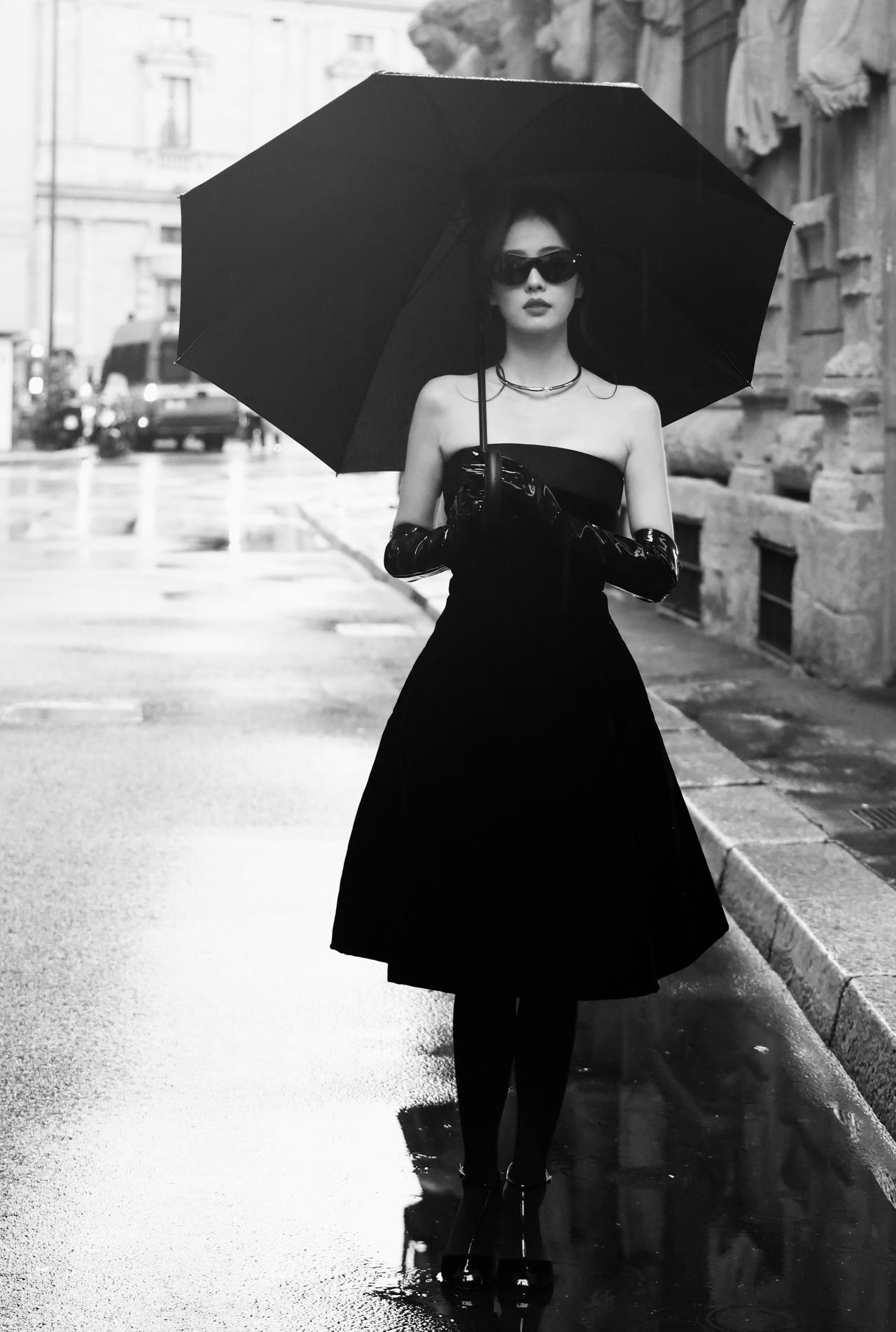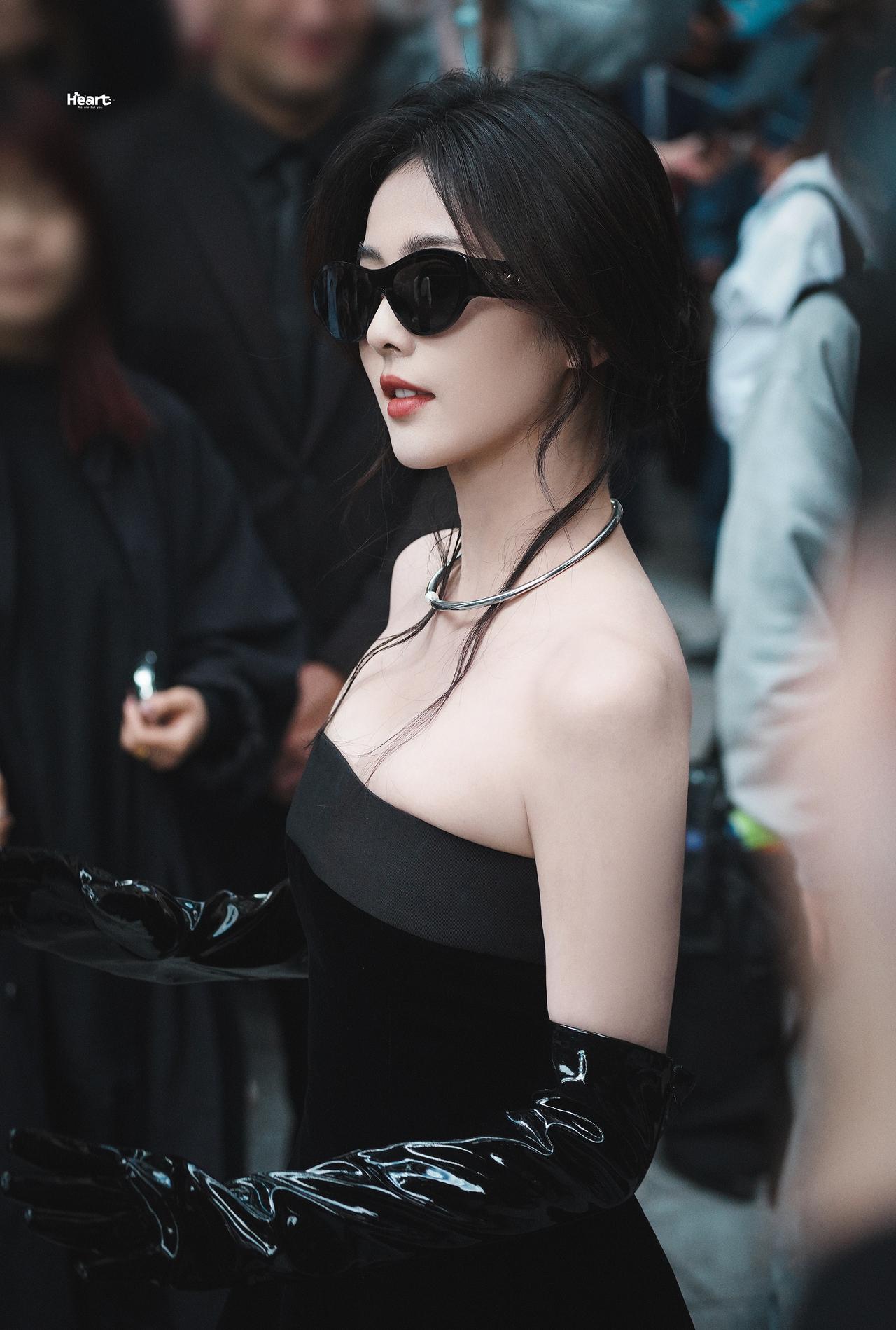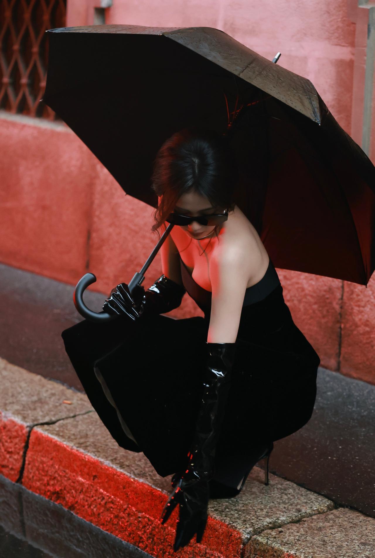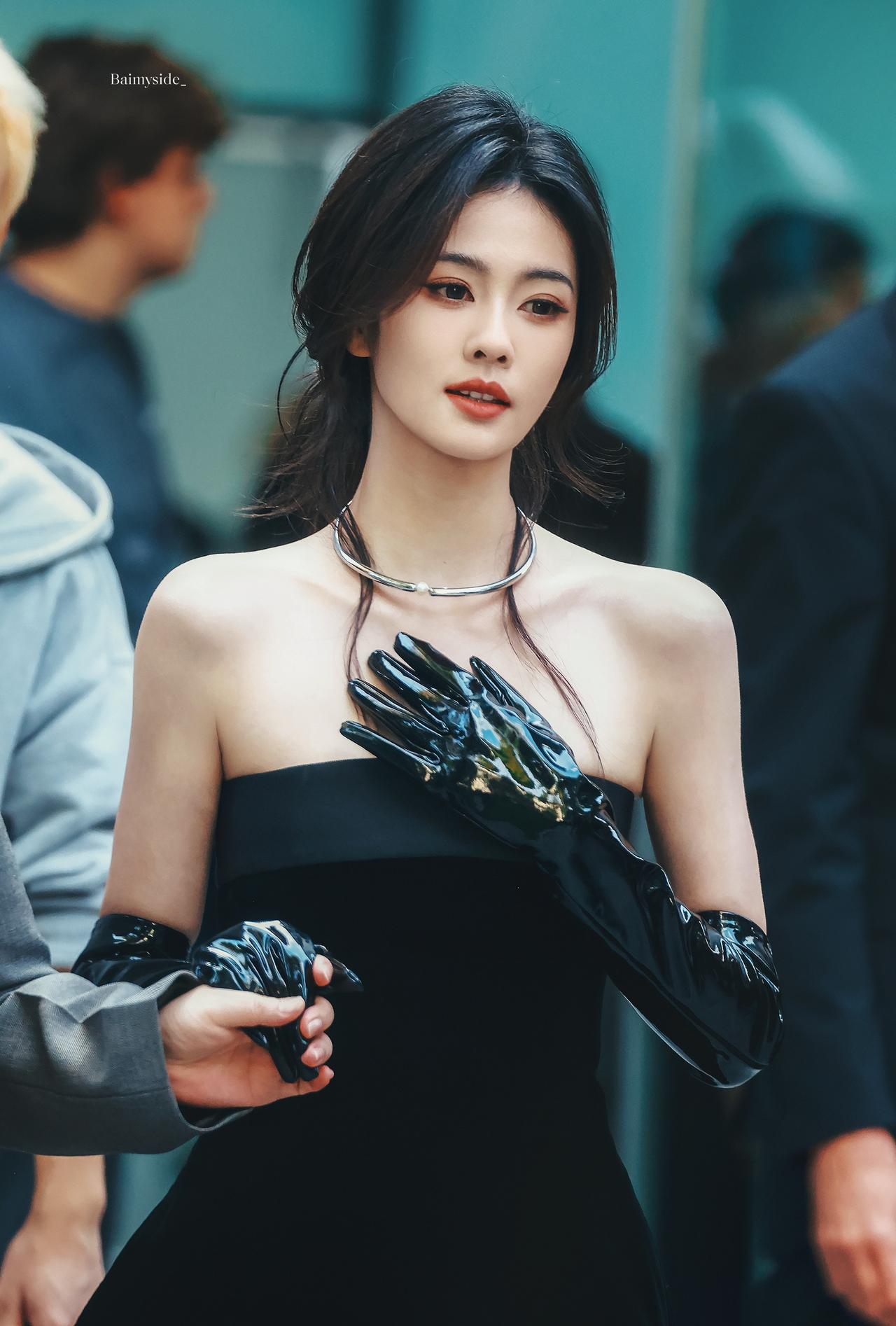 白鹿裹胸黑裙 黑色过膝手套 黑色丝袜大长腿 黑色半包细高跟 身材真好