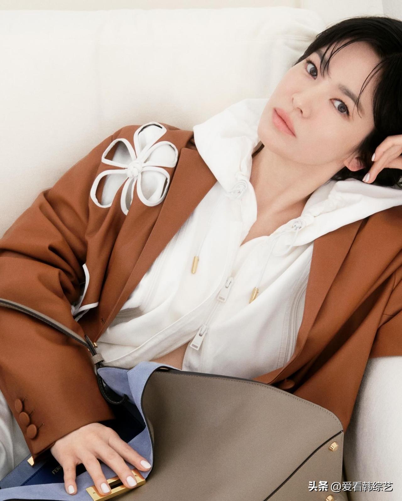 即使在特写镜头中,宋慧乔也展现出不老的美貌,她侧卧或倚靠在沙发上等姿势,散发出自由而又优雅的气息。