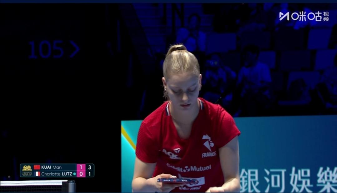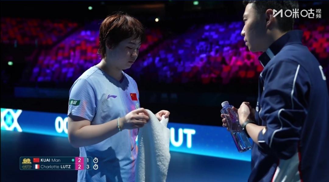 蒯曼3:2法国卢茨,惊险获胜! 蒯曼同样获得了伦敦世乒赛参赛资格! 澳门世界杯小组循环赛G7组首轮,国乒蒯曼第二位出战。 第一局,蒯曼6-0魔幻开局,11-2速胜! 第二局,11-6。 第三局,蒯曼2-5、3-8落后,追到7-9,打停法国卢茨。8-11憾负! 第四局,一直被压着打,6-11告负!比赛拖入决胜局! 第五局,蒯曼1-5落后换边,连追4分到5平!5-7落后又连追4分,9-7,11-8锁定胜局! 蒯曼3:2(11-2;11-6;8-11;6-11;11-8)险胜法国卢茨。 两位年轻同龄人的比赛,心态波动太大! 前两局蒯曼大比分大胜,速胜! 后两局,蒯曼都是开局落后,挖坑太深,被拖入决胜局! 决胜局,蒯曼开局落后4分,中局仍落后!但蒯曼技高一筹,冷静拼下了胜利!这时对手的心态就崩了! 热烈祝贺蒯曼3:2险胜法国小将卢茨! 乒协主席王励勤,总教练秦志戬和队友们观看这场比赛!看来值得总结提高了! 期待蒯曼低开高走! G7组,还有美国王艾米。蒯曼小组第一出线无忧!