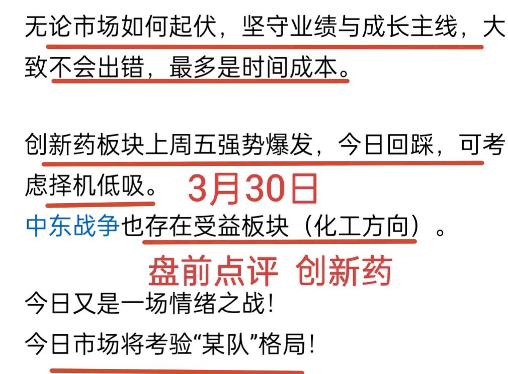 A股:大盘呈现出风景这边独好的态势,正朝着第二反弹目标迈进! 周末利空消息被放大,市场一片看空之声,但今日大盘表现超出预期,早盘连第一道防线都没有触及到。 渔夫在周末(3月29日)表达过如下观点: 1. 大盘风险可控。 2. 市场存在局部风险(板块个股)。 大盘已达成反弹第一目标3900点,下一个反弹目标是3960点一线,即回补3月23日跳空下跌形成的缺口。 不过,当前大盘存在一定的技术性压力。 在成交量相对较少的情况下,需要时间来化解压力。 因此,大盘上涨的持续性会受到一定限制。 渔夫个人认为,此次始于4197点的市场大跌是市场内部的结构性重组,并非牛市终结。 市场结构性重组带来的交易机会,值得中线关注! 业绩+成长路线,是中线机会所在,无需过度在意短期市场波动。 从技术层面看,部分被市场错杀的股票回到了长期均线附近并止跌企稳,是较好中线的布局时机! PS:上周四、五以及今天盘前提示的创新药板块可继续逢低关注。 个人观点,仅供交流,不构成投资建议!理财有风险,投资需谨慎! 大盘分析行情 股市分析行情
