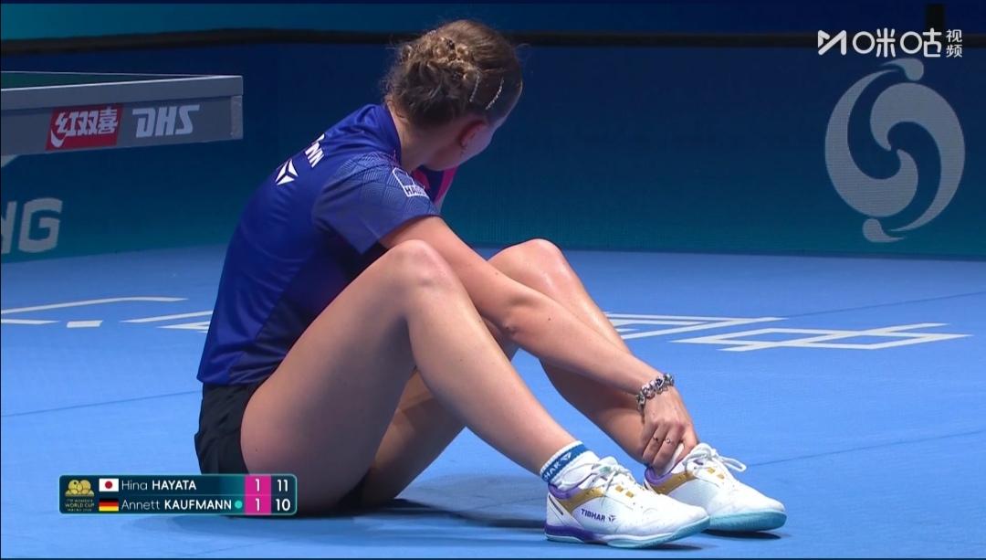 日本早田希娜逃过一劫! G组有日本早田希娜,国乒覃予萱,德国考夫曼三名选手。 第一场小组循环赛 日本早田希娜Vs德国小将考夫曼 双方大分1:1平! 第3局,考夫曼救球受伤倒地,11-13败北。 第4局比赛受到影响,最终1:3败北。 考夫曼1:3(4-11;11-6;11-13;6-11)负早田希娜。 日本早田希娜逃过一劫! 覃予萱加油,拿下早田,出线在望。