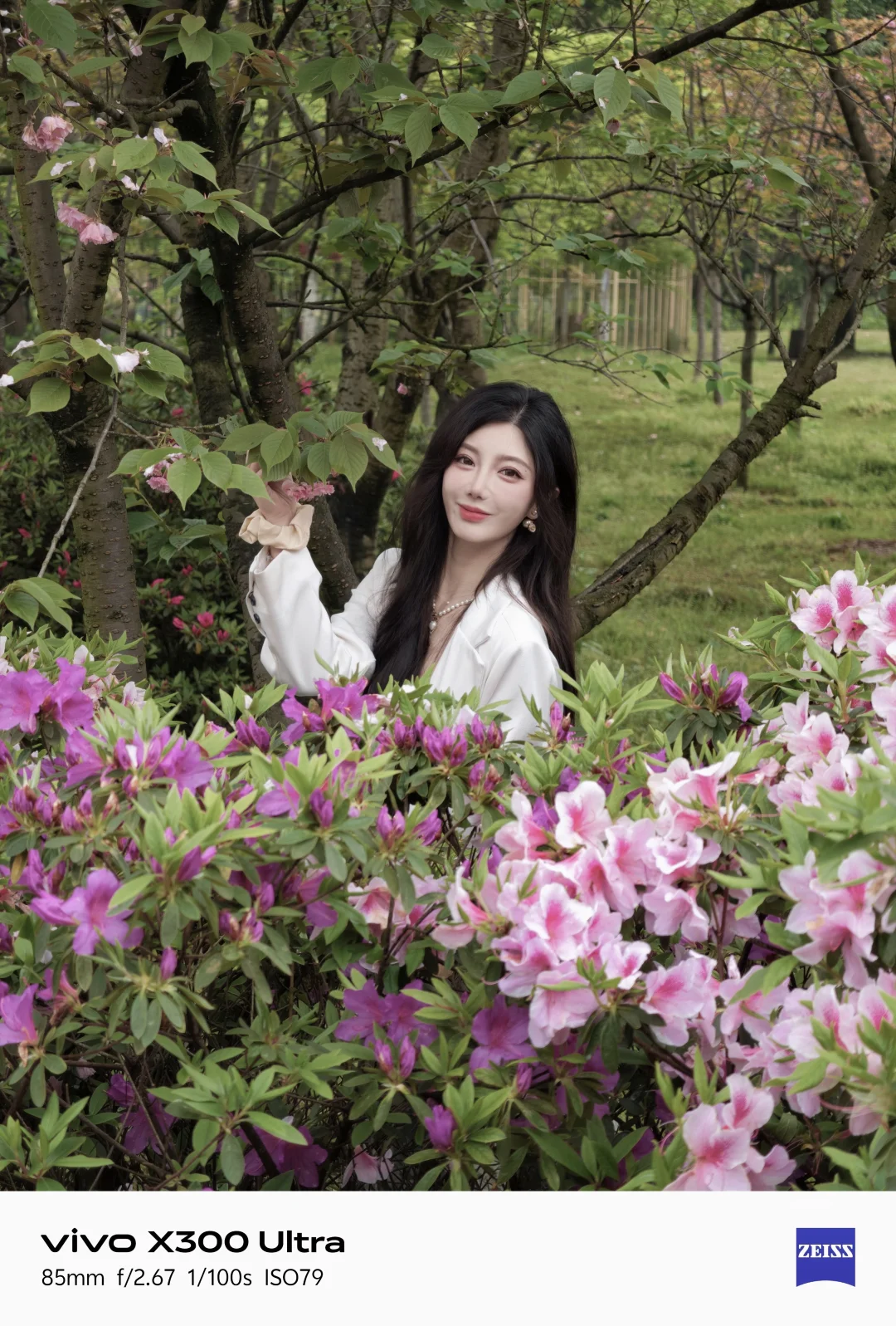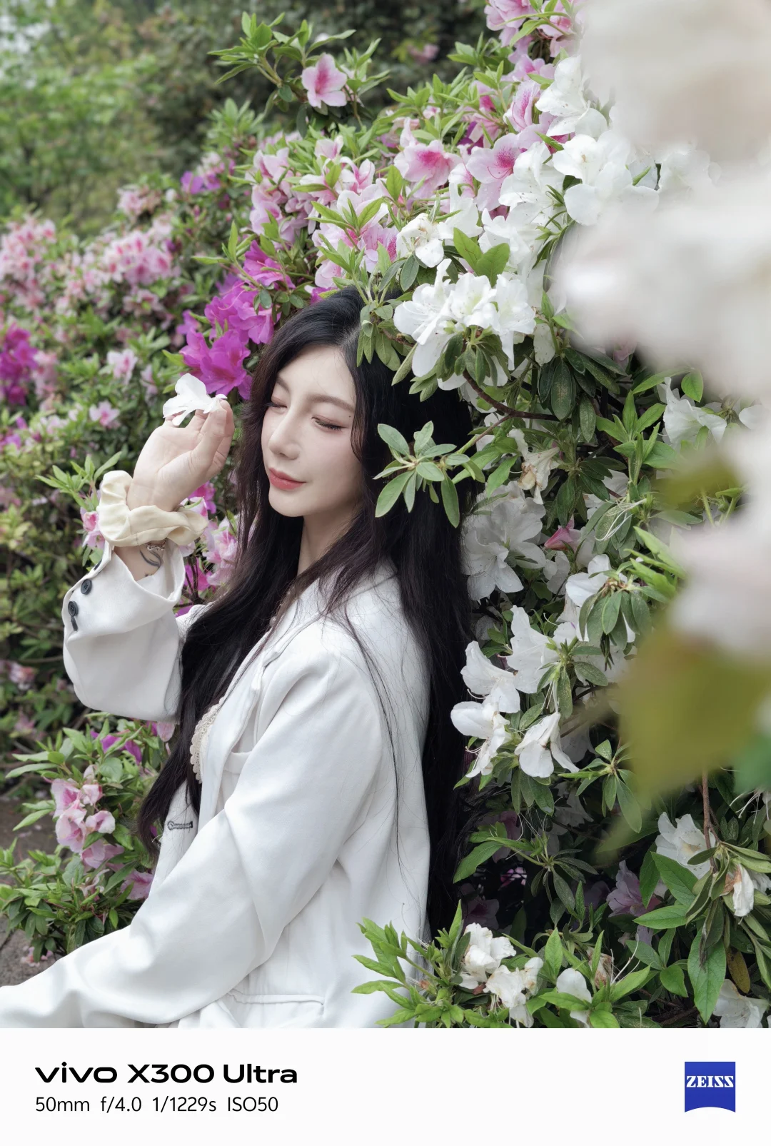 2. 让花做前景,人物半藏在花丛里,氛围感直接拉满