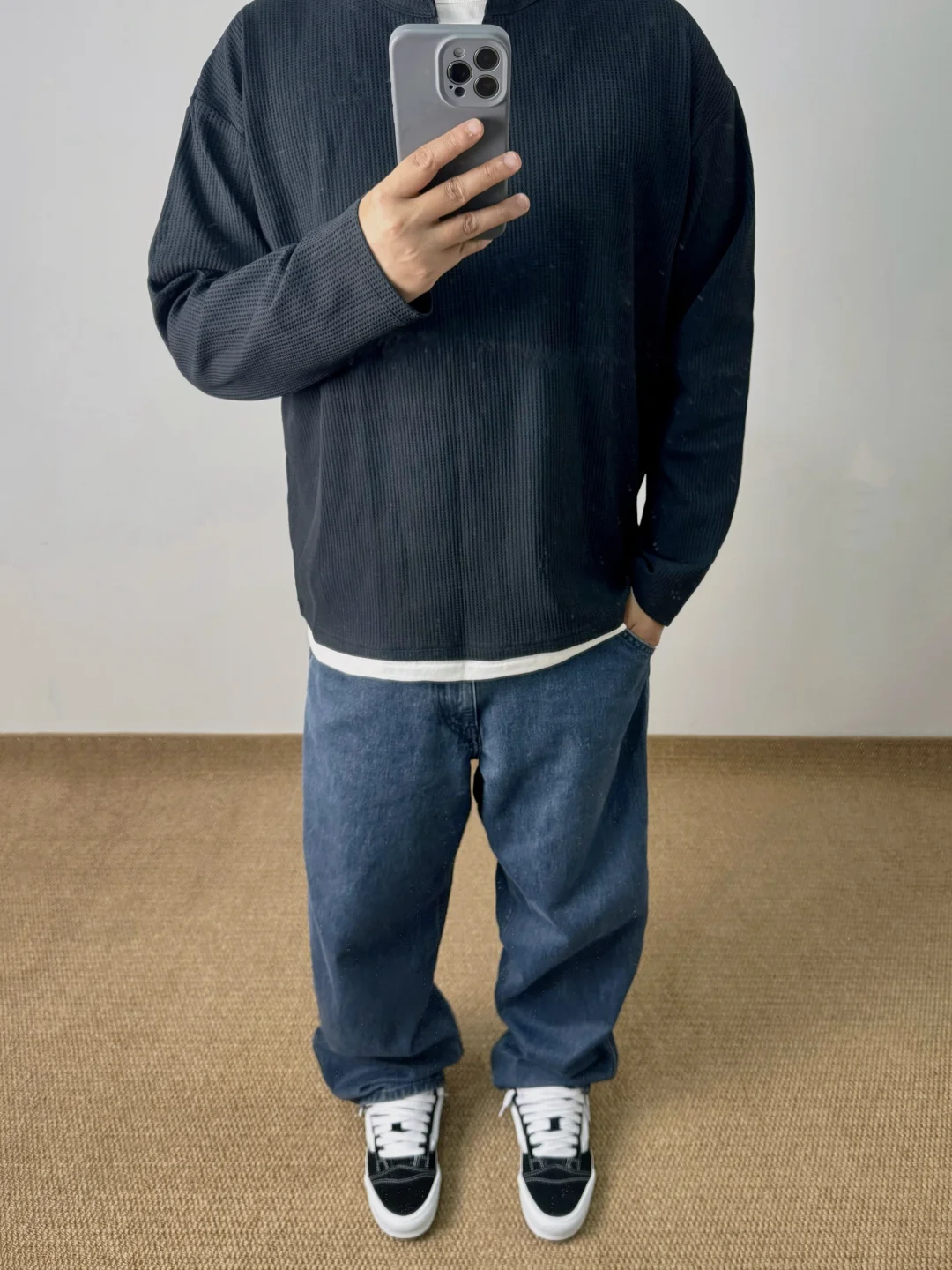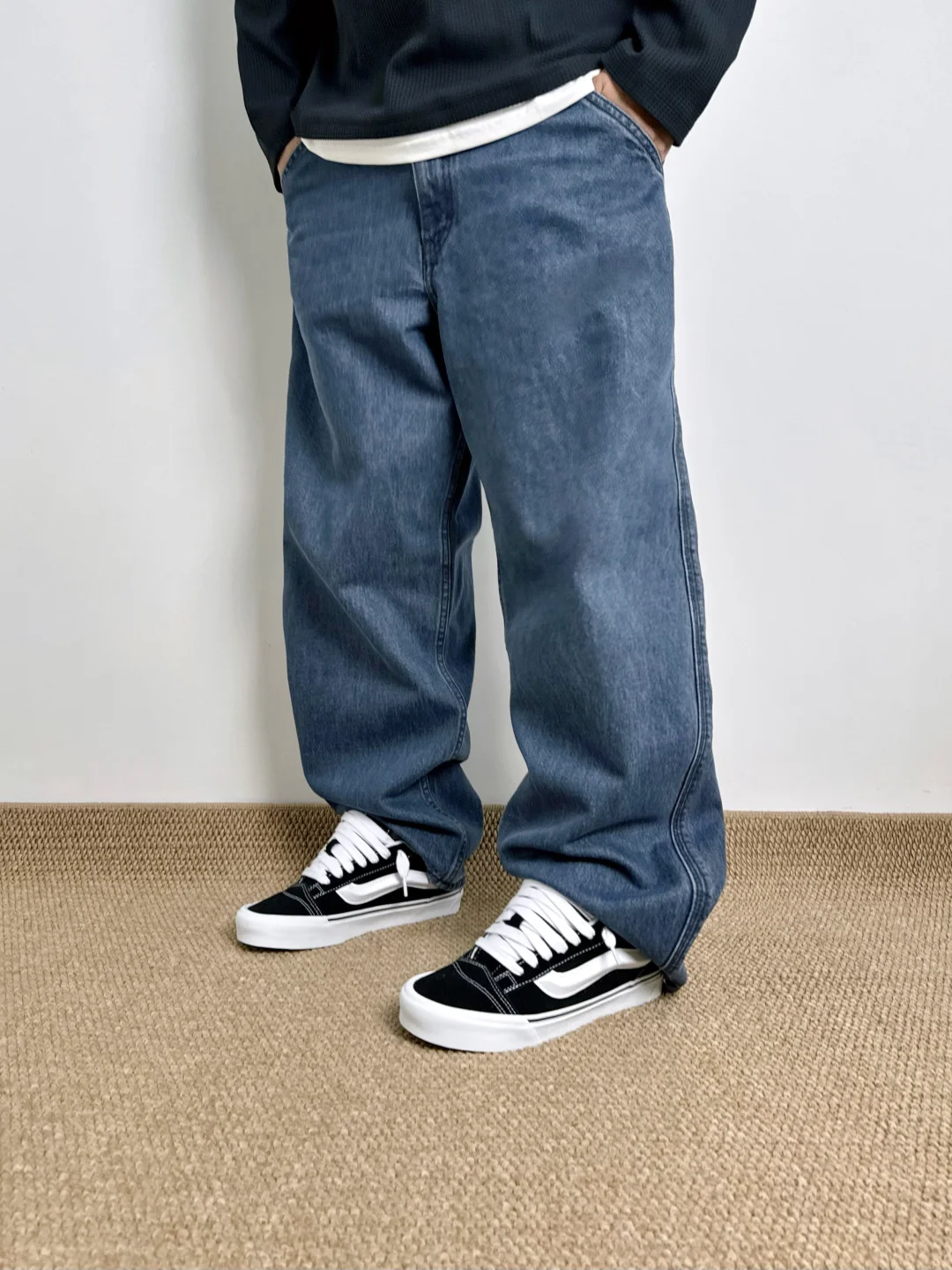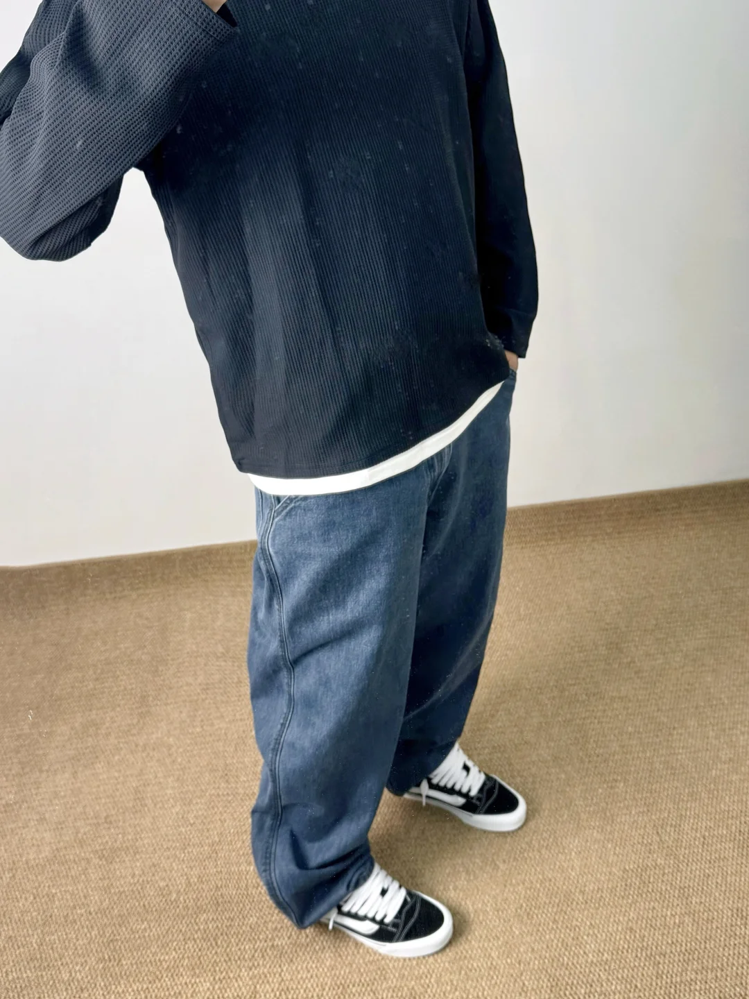 -我上周刚穿过,反正每次着急出门的时候就会想到它;本期牛仔裤“中登搭配”,低腰一些&裤脚堆叠,搭配板鞋营造街头感 . —————— . 👔Massulti / 华夫格 // L . 👖Uniqlo U / 482874 // 84A . 👟VANS Knu Skool // 41 . —————— . ✏️Taille:178cm 75kg // EU42 CHN265