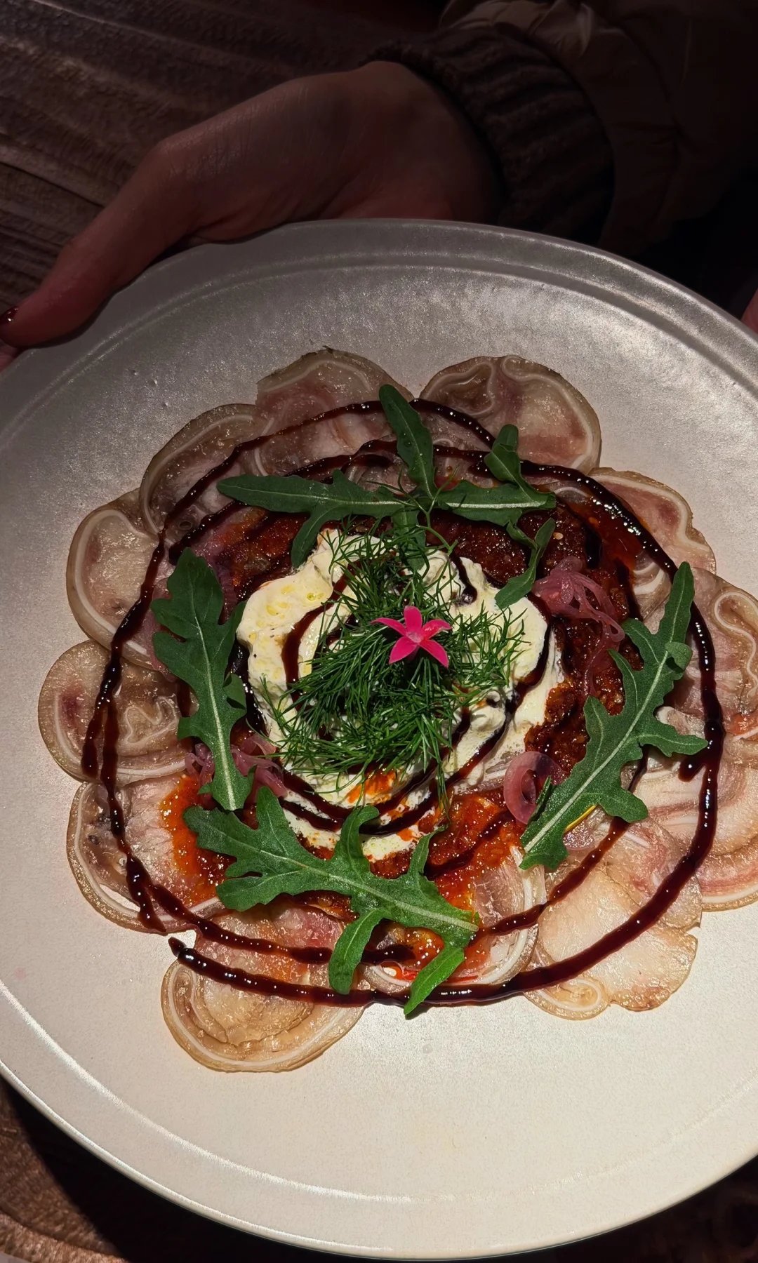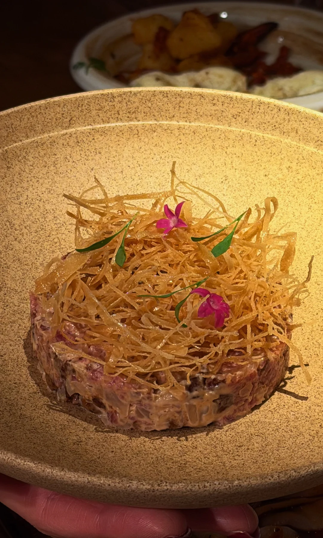 🍾猪耳朵有添加黑醋口味其实比较大胆,好吃😋。那个牛肉塔塔也是很丰富口感,闭眼点很好吃