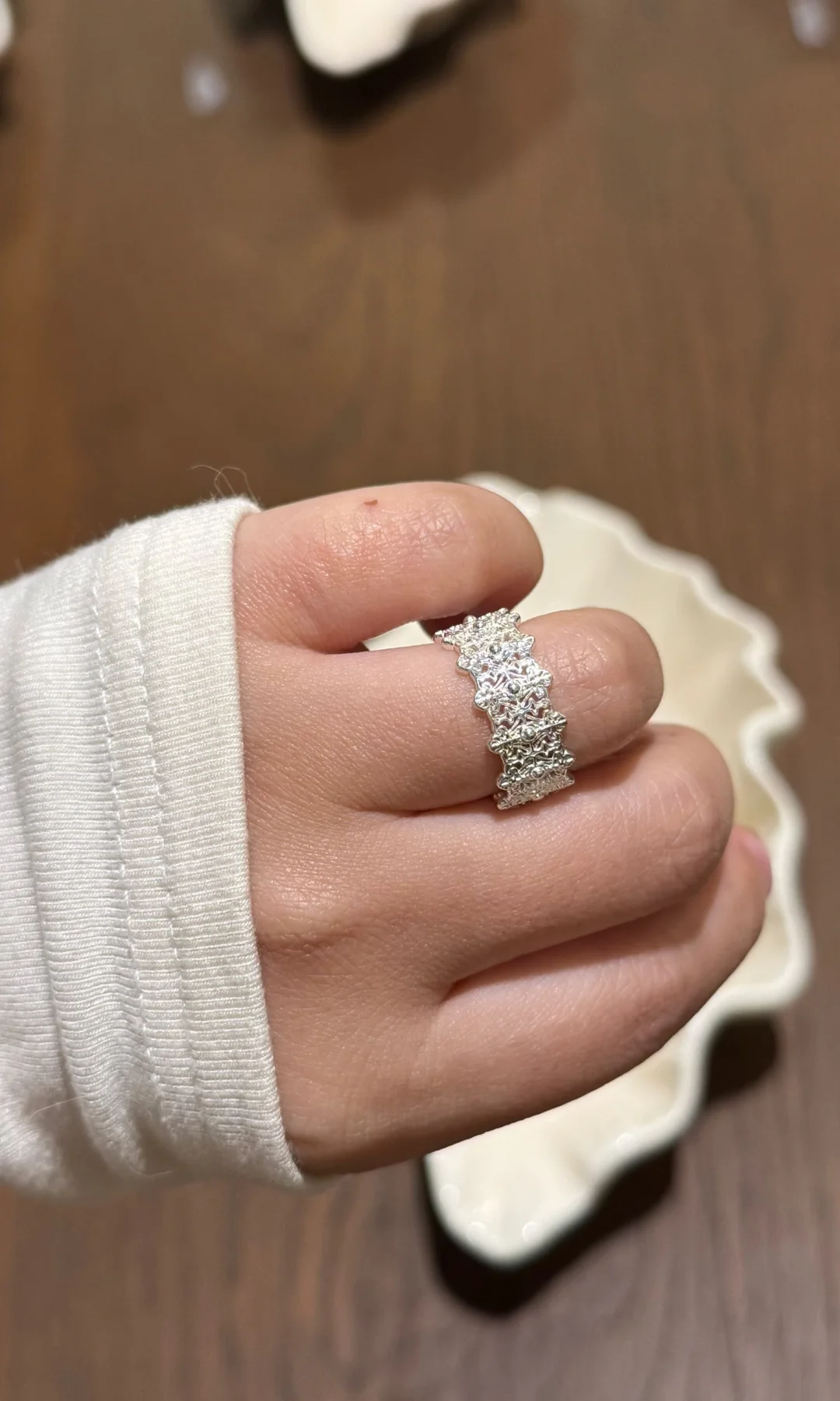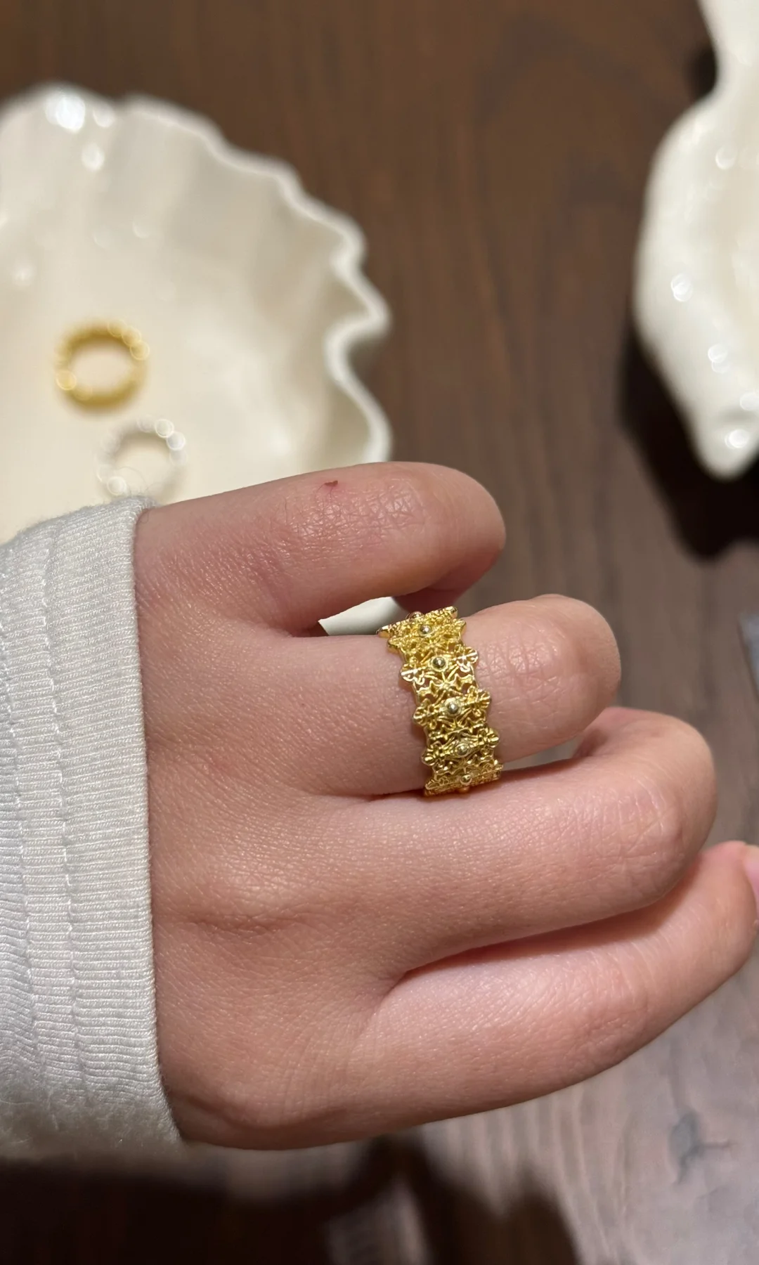 看了下均价也就百来块钱,还不错。 不太爱戴戒指💍,试了两款都很喜欢。
