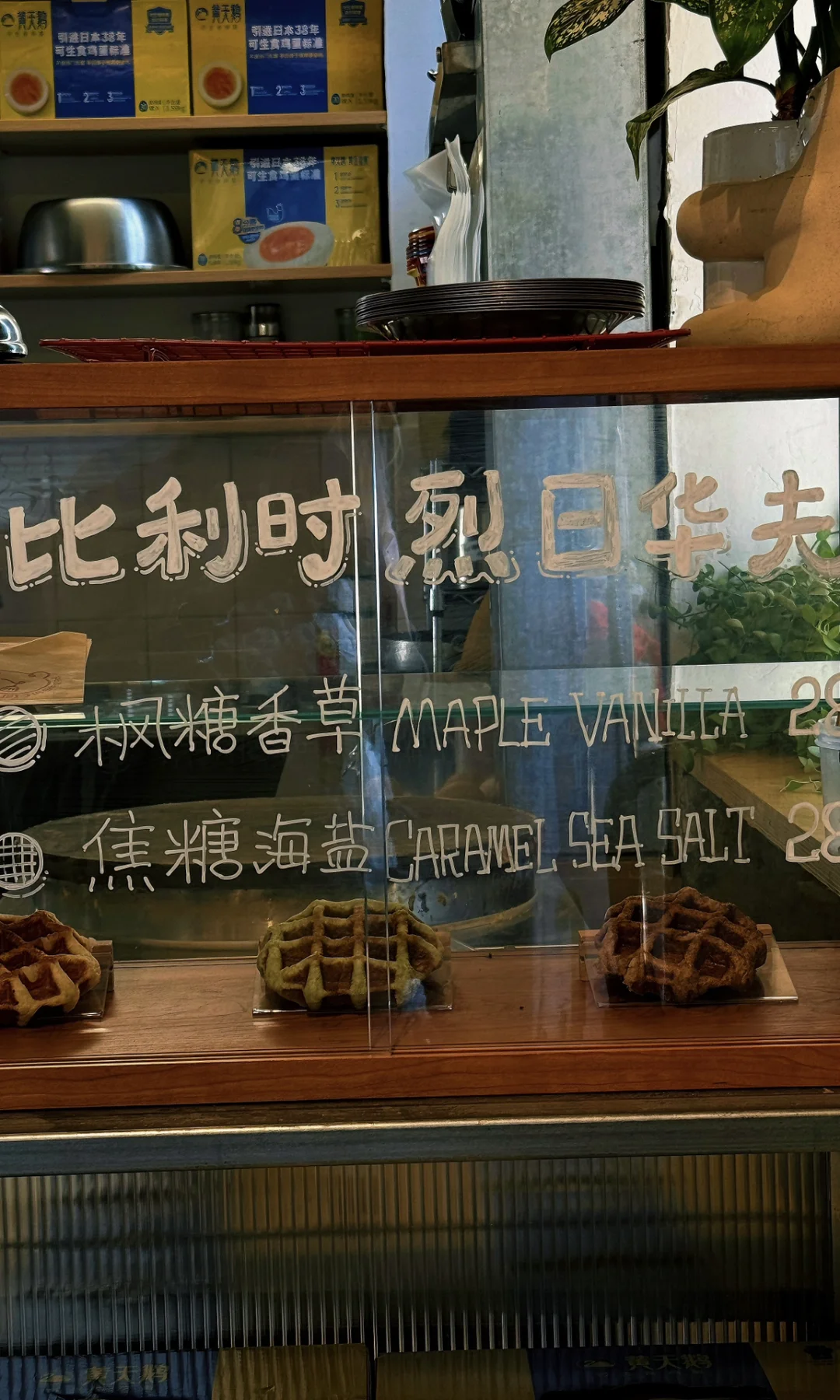 嘉善路上这家门店不明显咖啡馆有点特别。周内14点之前咖啡馆会售卖煎饼,我们去得晚煎饼没了,点了华夫饼很好吃,一度让人有点担心「卖咖啡」是不是不务正业? 就不是齁甜或者预制是天然的发酵口感 很推荐你们。