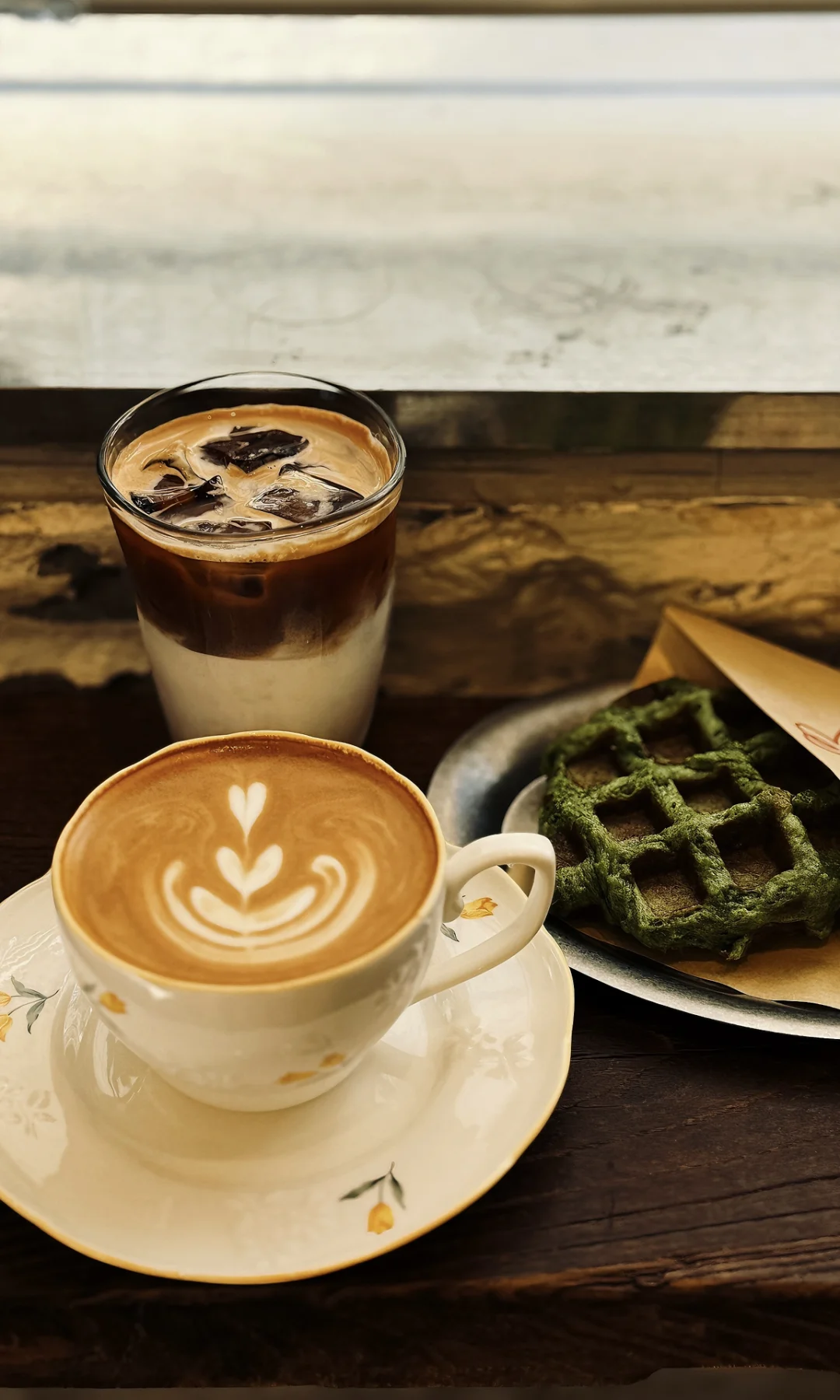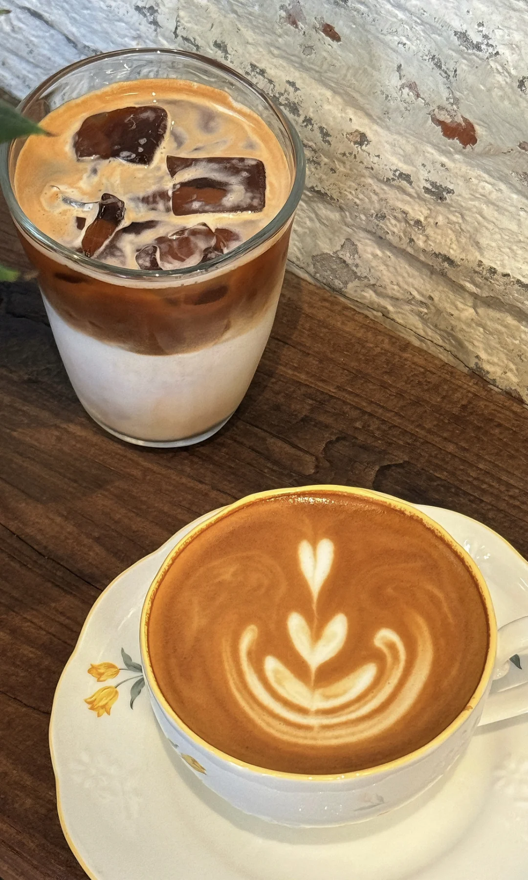 ☕咖啡可以自己选择豆子,点了奶咖跟鸳鸯拿铁。