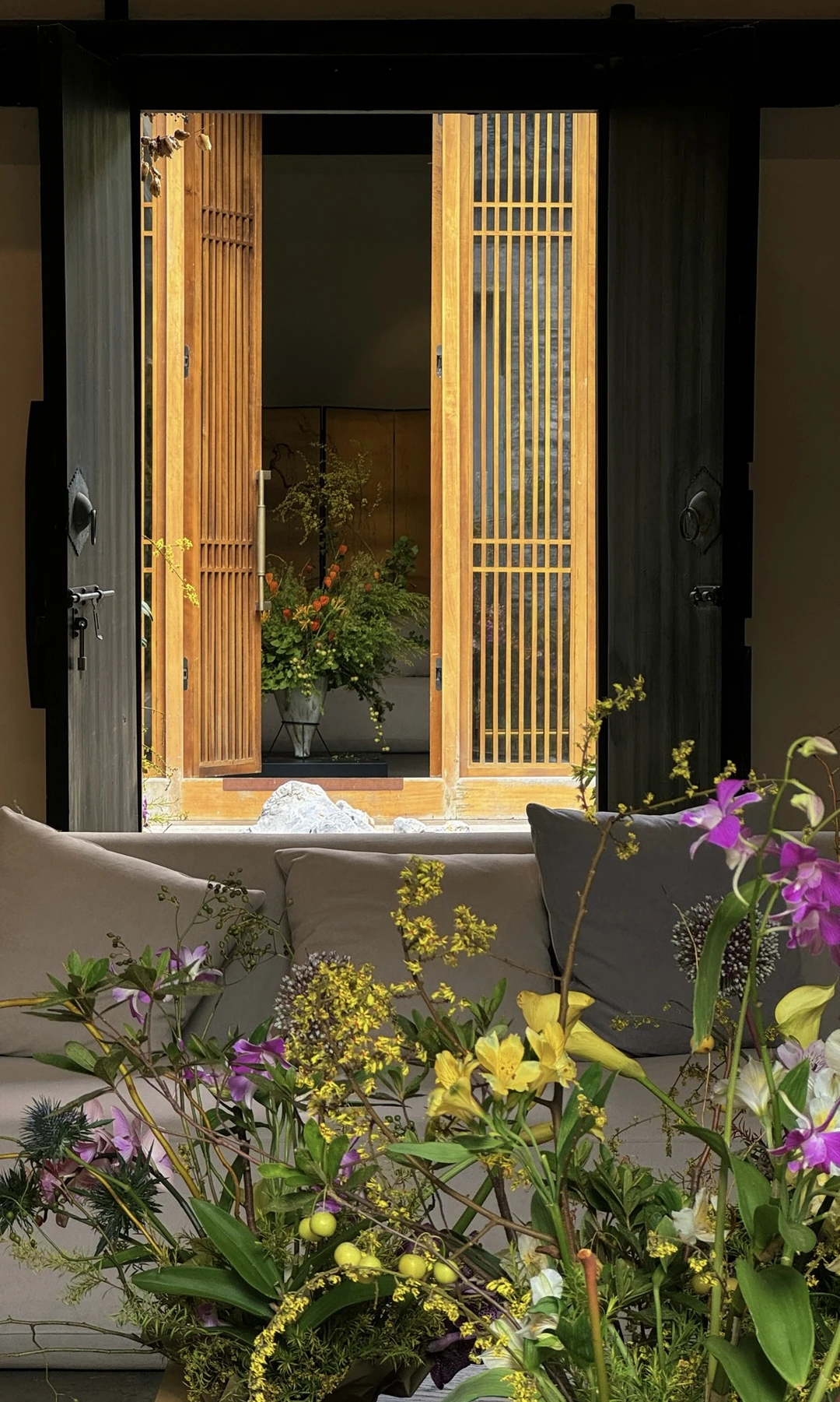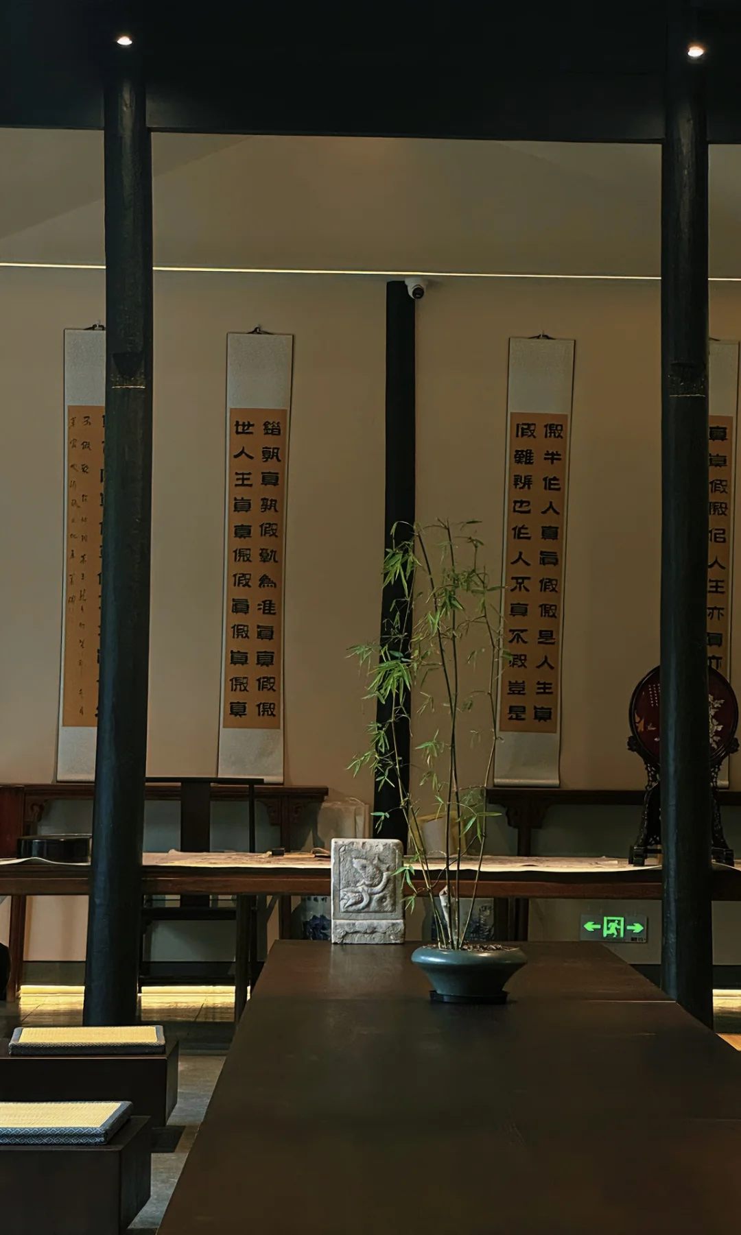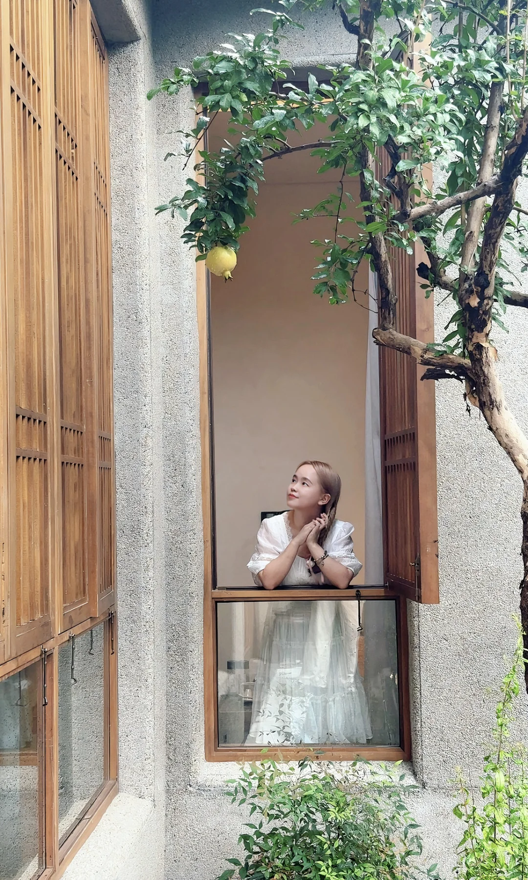 于是一天的时间驻足乌木门口听雨,漫步中式花园花港观鱼 ,品茗品美食,甚至在自己的小院赏月🎑听风,因为我发现院子真的很美