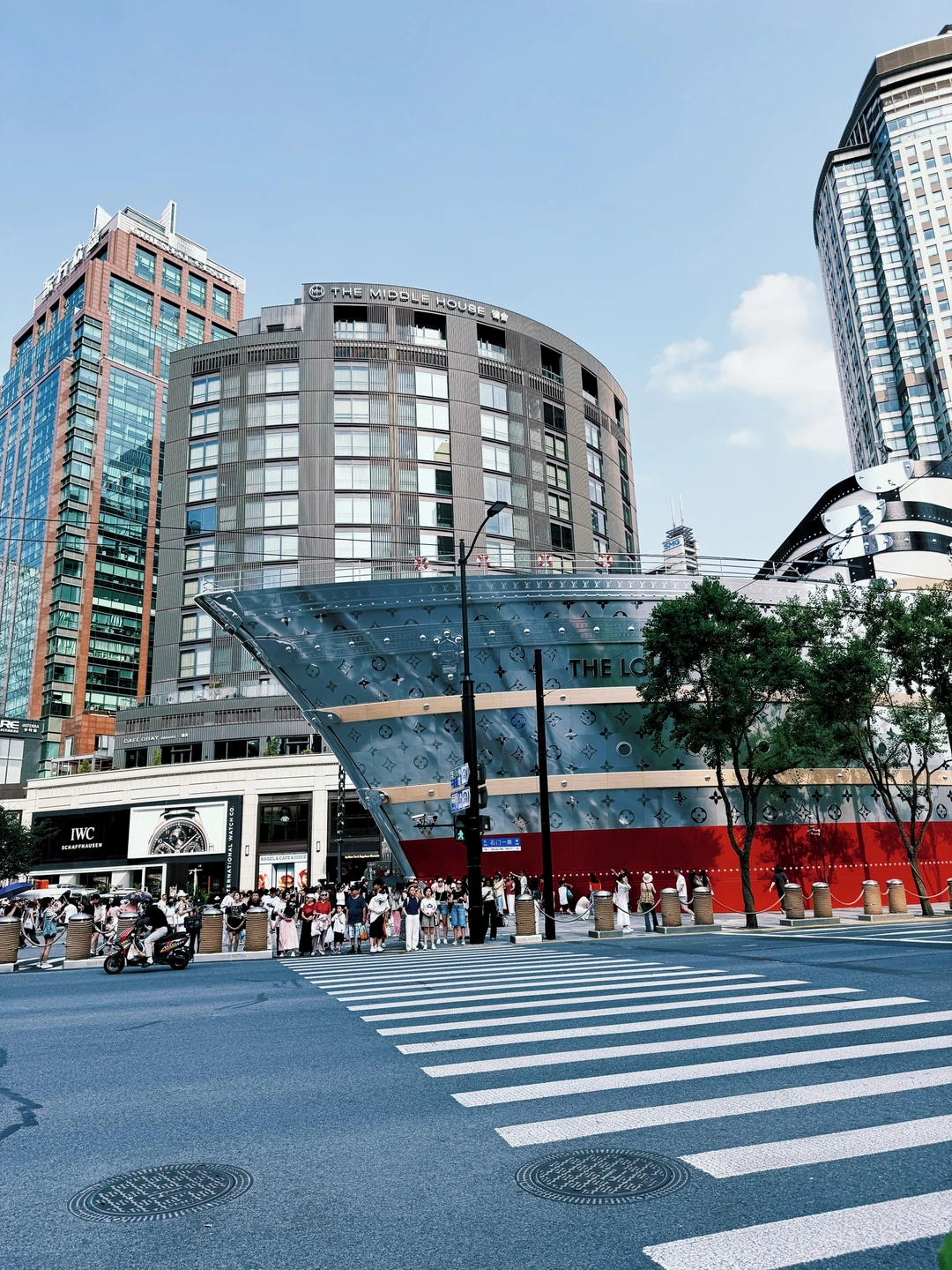 第1️⃣站:南京西路LV巨轮(要说今夏上海谁最火?这不妥妥C位),最近已经亲自打卡过周内白天人不算多。晴天白云跟银色巨轮真的绝配,高级感满格。