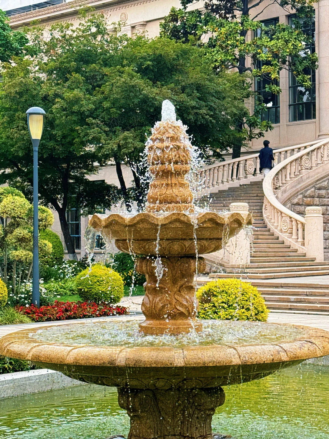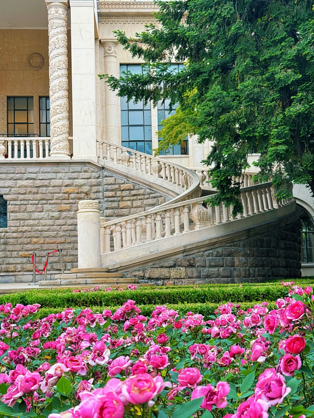 巴洛克风格建筑,古典艺术跟当代碰撞;法式喷泉⛲️ ,白色罗马柱妥妥高级感拉满。还经常有🆓展览