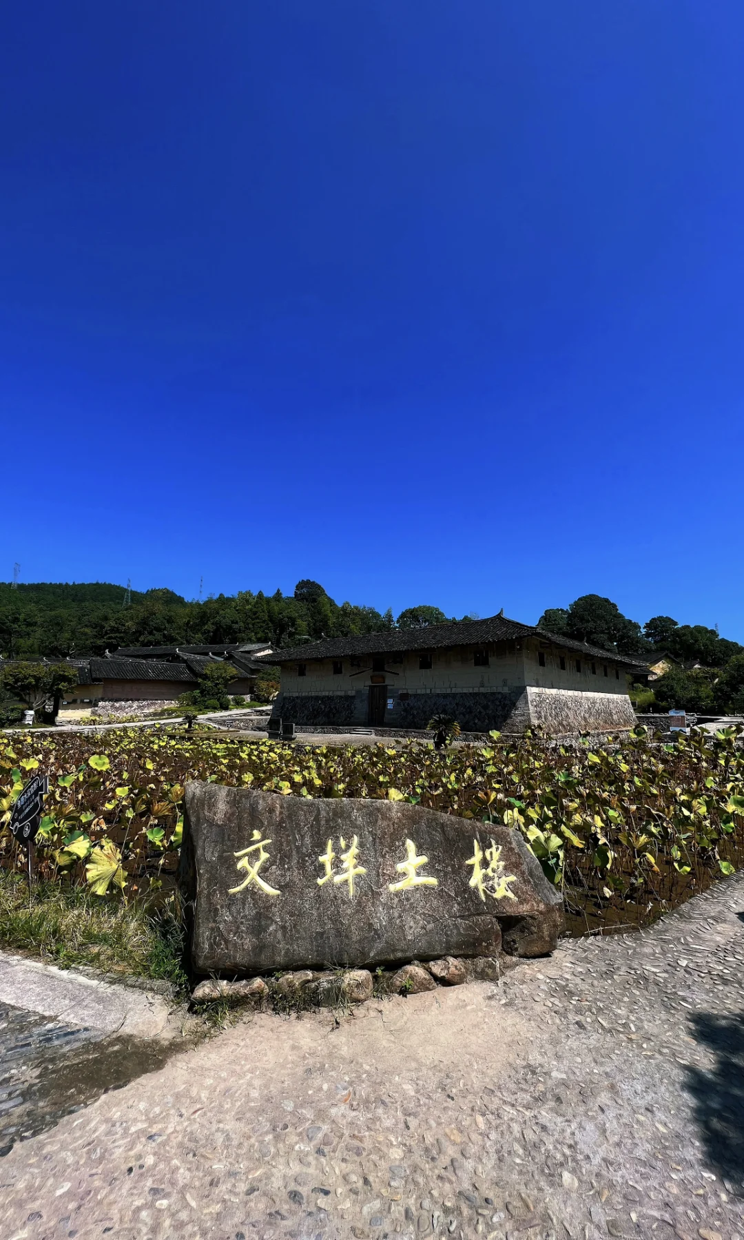 3️⃣交佯土楼(不收费):大片客家土楼建筑,夏季可以看到土楼正前方一大片的荷塘跟成群嬉戏的鸭子,背靠青山,周边保留水城厝, 随处可见的水井,农田菜畦。俨然就是一副“少无适俗韵,性本爱丘山”的农家画卷。