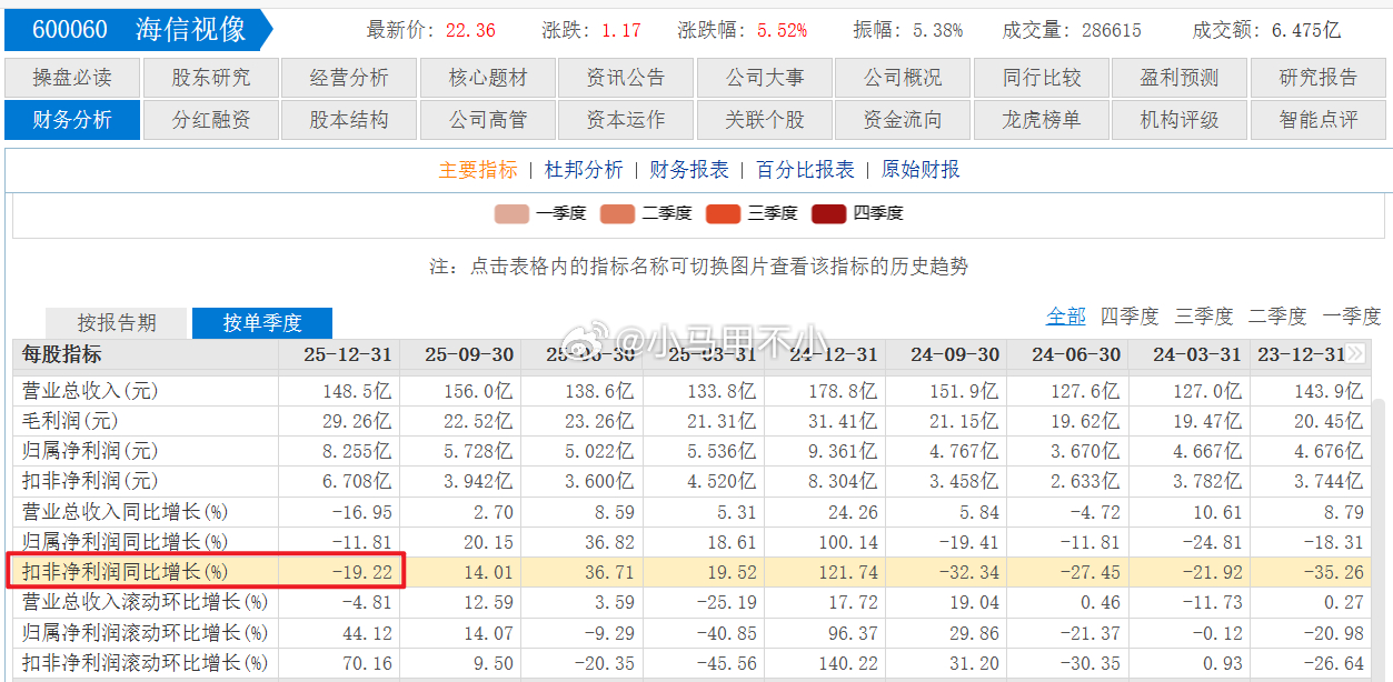 海信视像,四季度营收149亿,同比减少17%扣非利润6.7亿,同比减少19%毛利