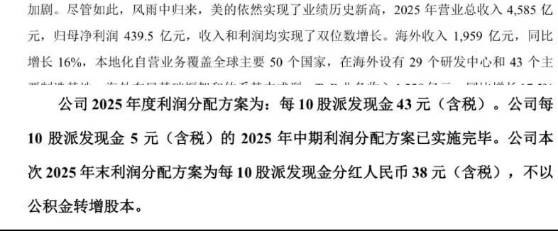 2025年美的利润全部分红美的业绩再创新高,发展势头强劲,将全部利润用于分红,尽