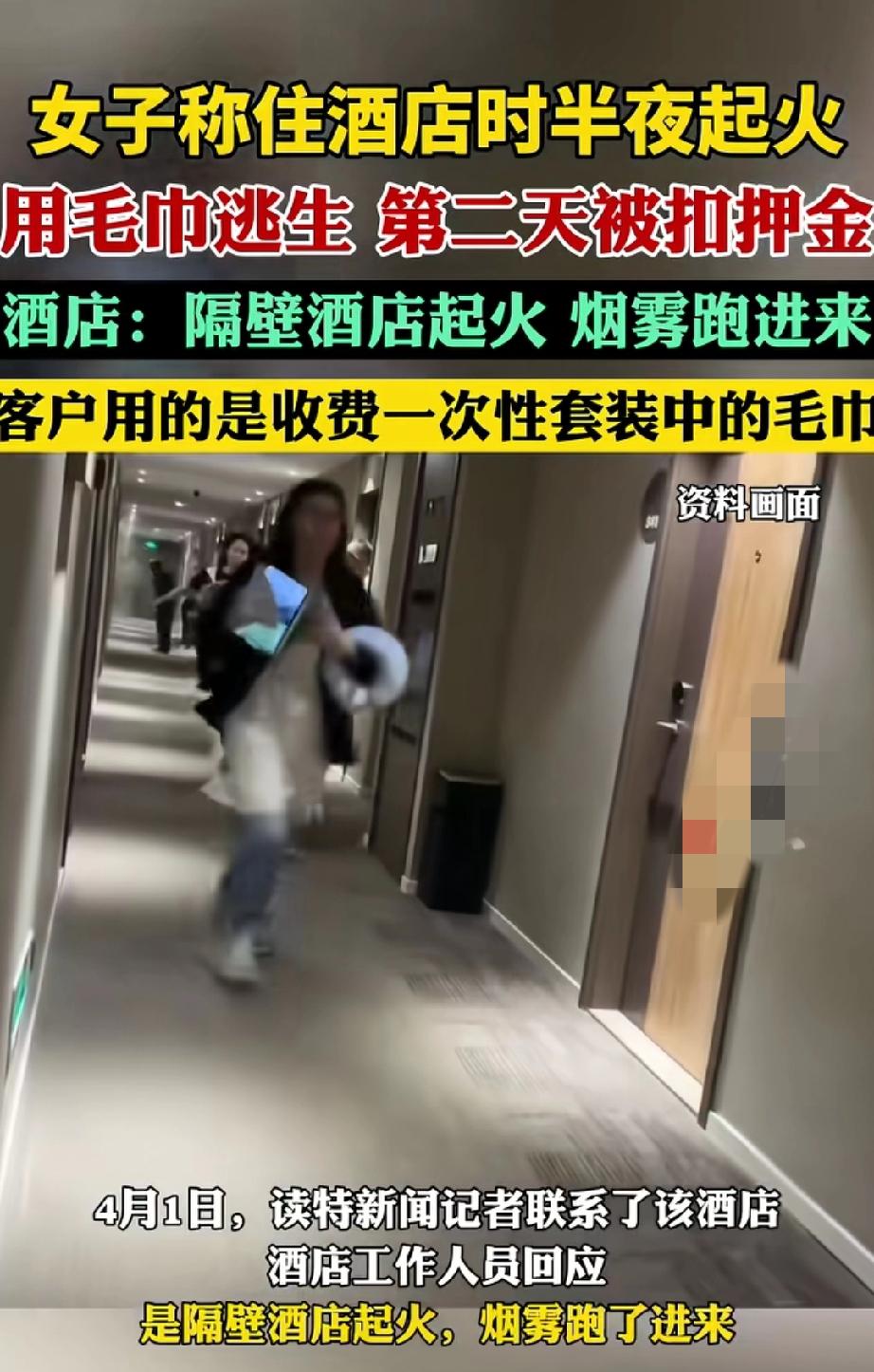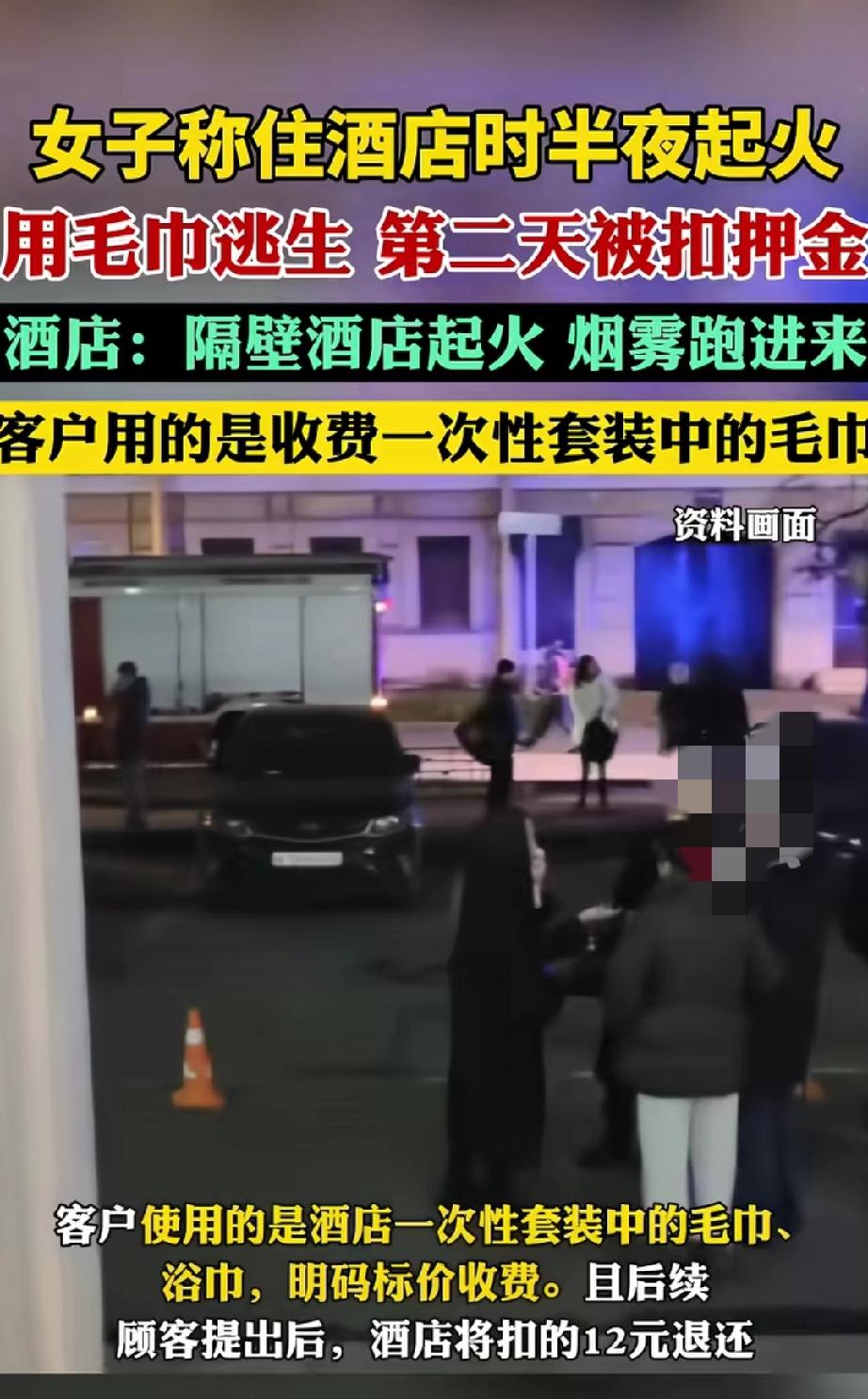 可这女子逃生后,酒店却要收毛巾费,这就离谱。人家是为了逃命才用的毛巾,又不是故意浪费。在这种紧急情况下,酒店应该把安全和人文关怀放首位,而不是想着这点小钱。这事儿也给其他酒店提个醒,别因小失大,寒了顾客的心。 酒店外墙着火