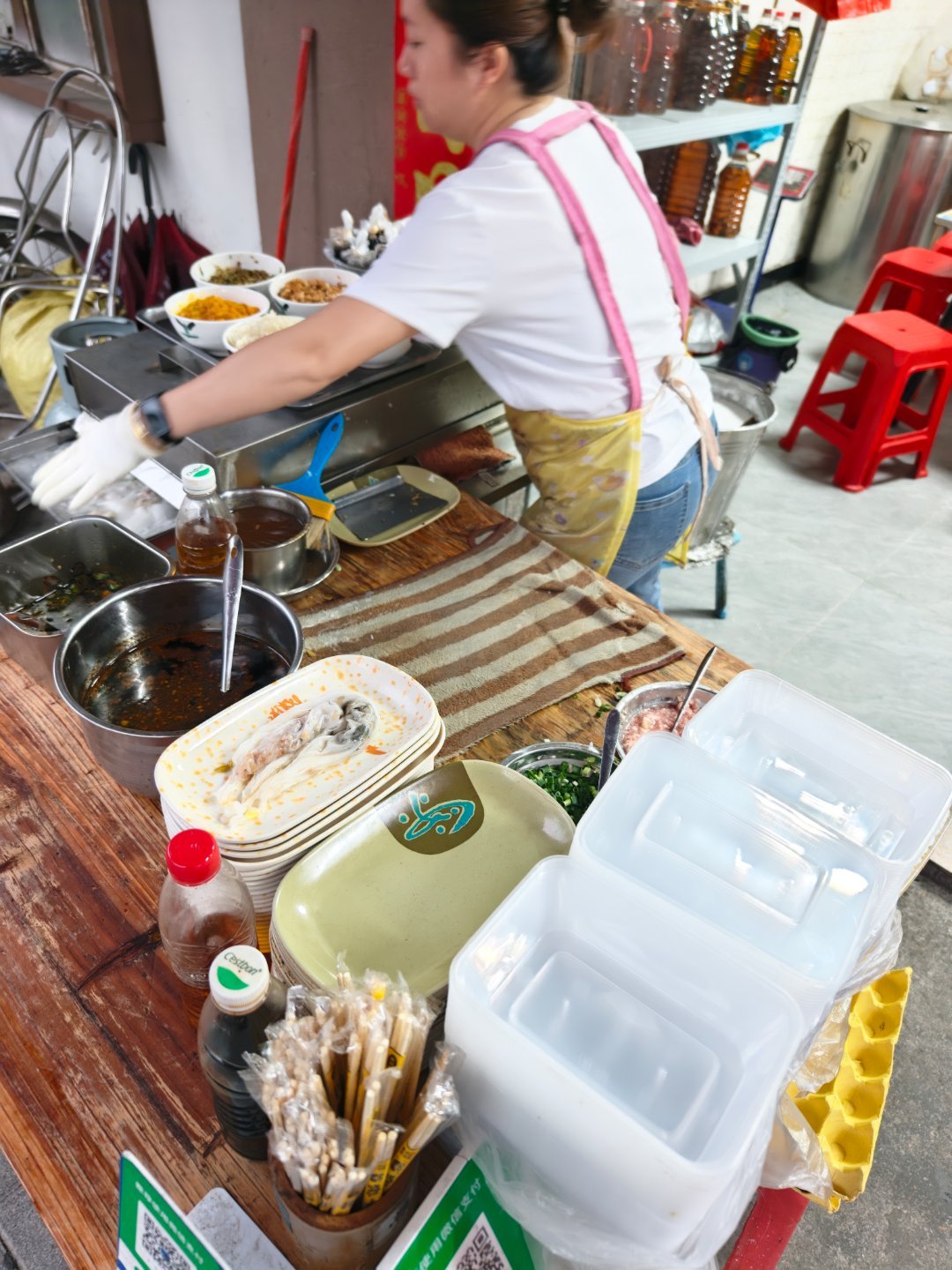 早上一口入魂的肠粉老板娘每天早上5点多就开铺客家的肠粉就很多料头,也可以搭肉糜和鸡蛋,当你不知道要什么馅的时候老板娘就会现在出马帮你配生活手记 惠州·龙门