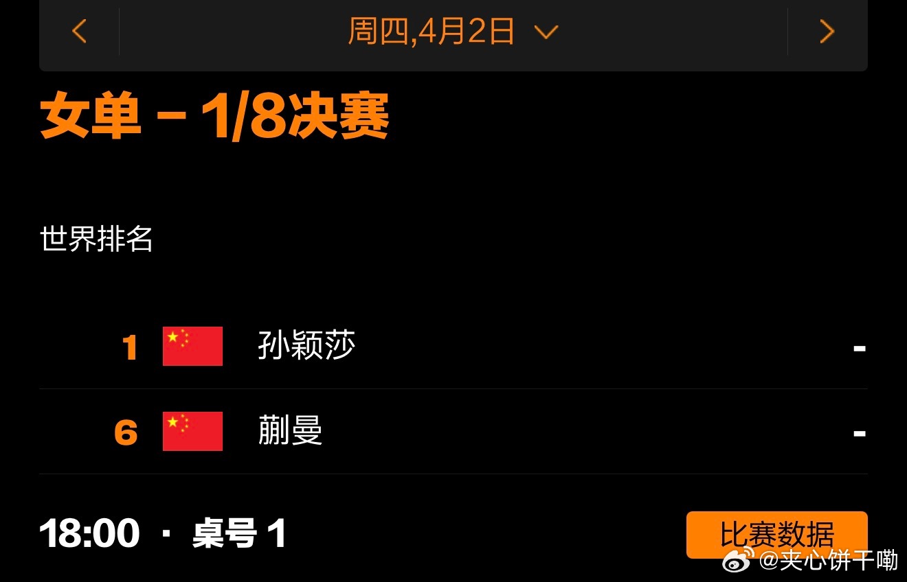 2026澳门国际乒联单打世界杯丨莎莎大头赛程4月2日赛程18:00 T1 孙颖莎🇨🇳VS蒯曼🇨🇳4月3日赛程18:45 T1 王楚钦🇨🇳VS费利克斯·勒布伦🇫🇷 孙颖莎王楚钦比赛加油,健康完赛