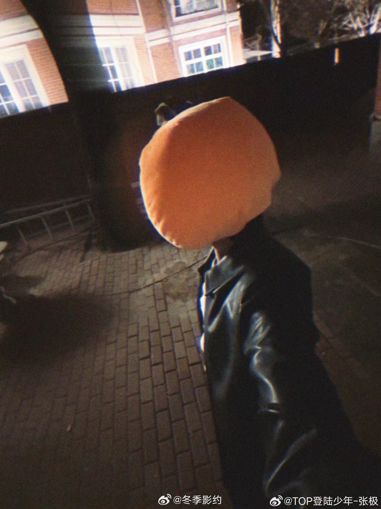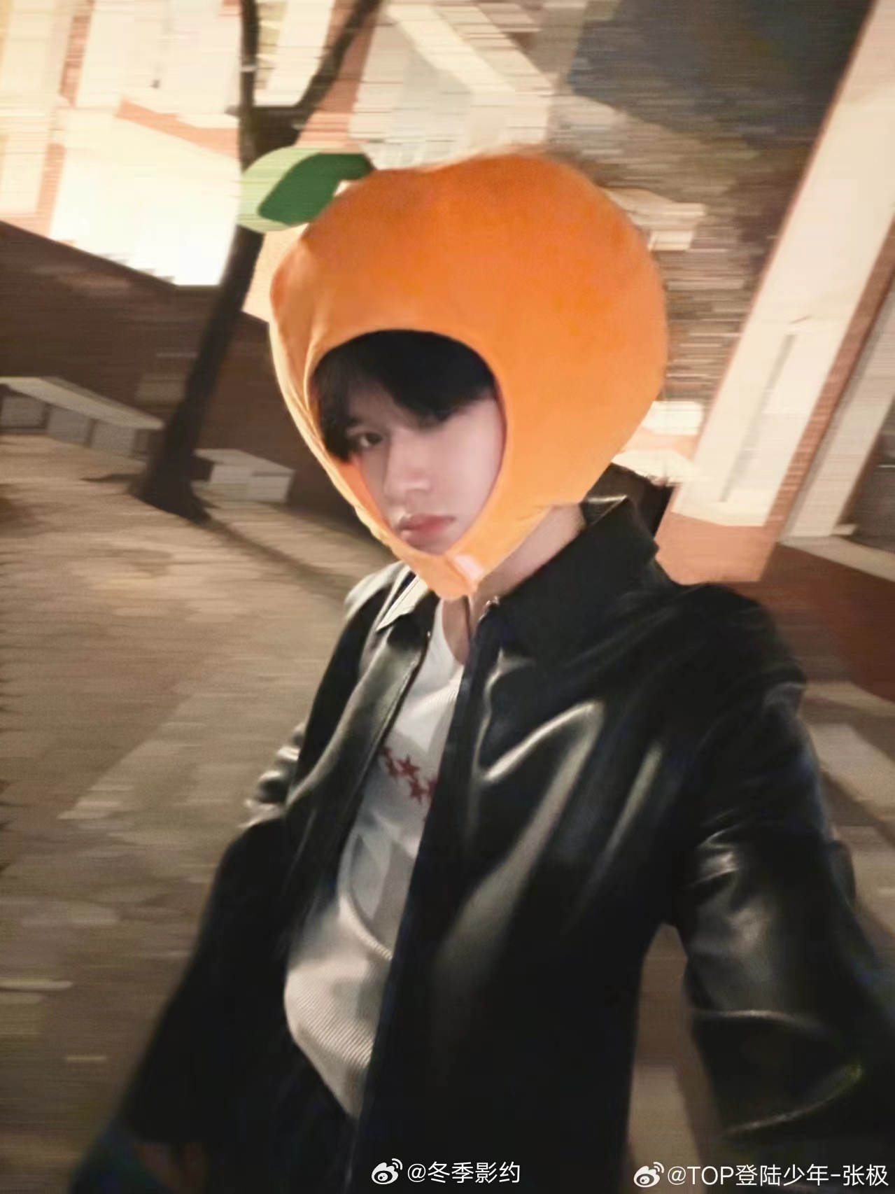 张极橘子头套 张极戴上橘子头套之后少年感更足了,颜色亮眼又不突兀,随便一拍都很好