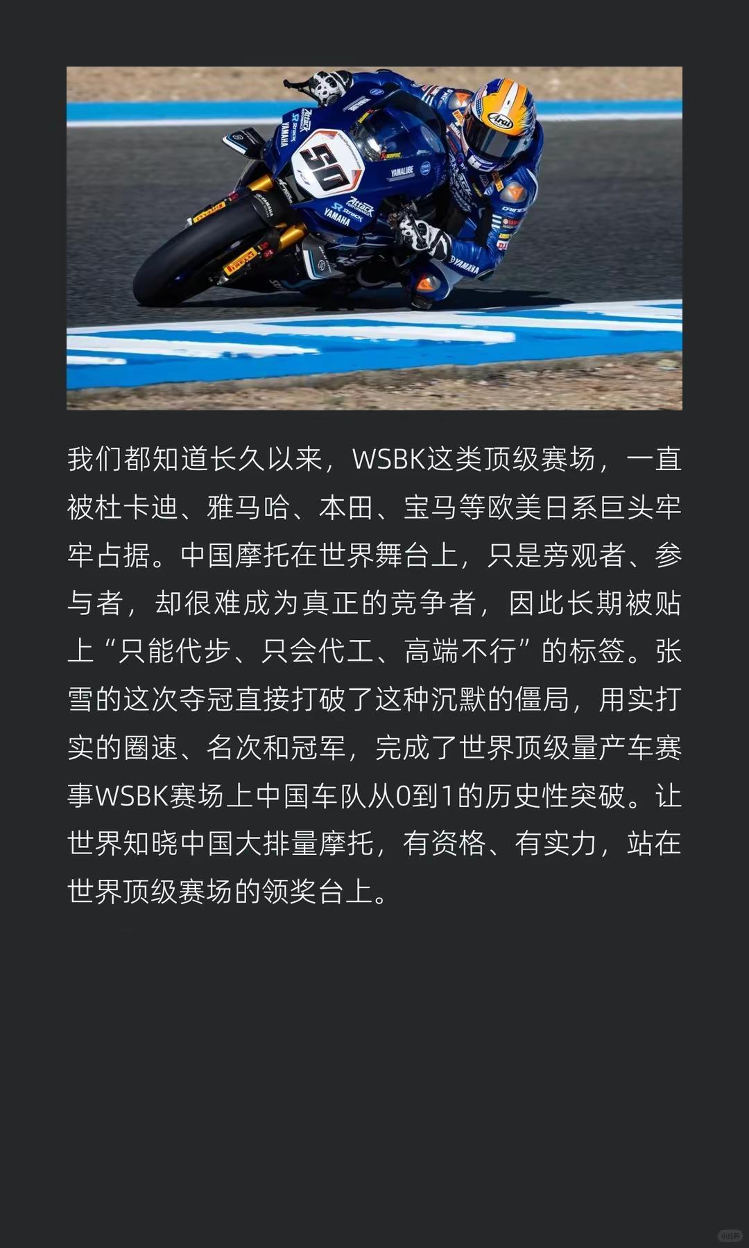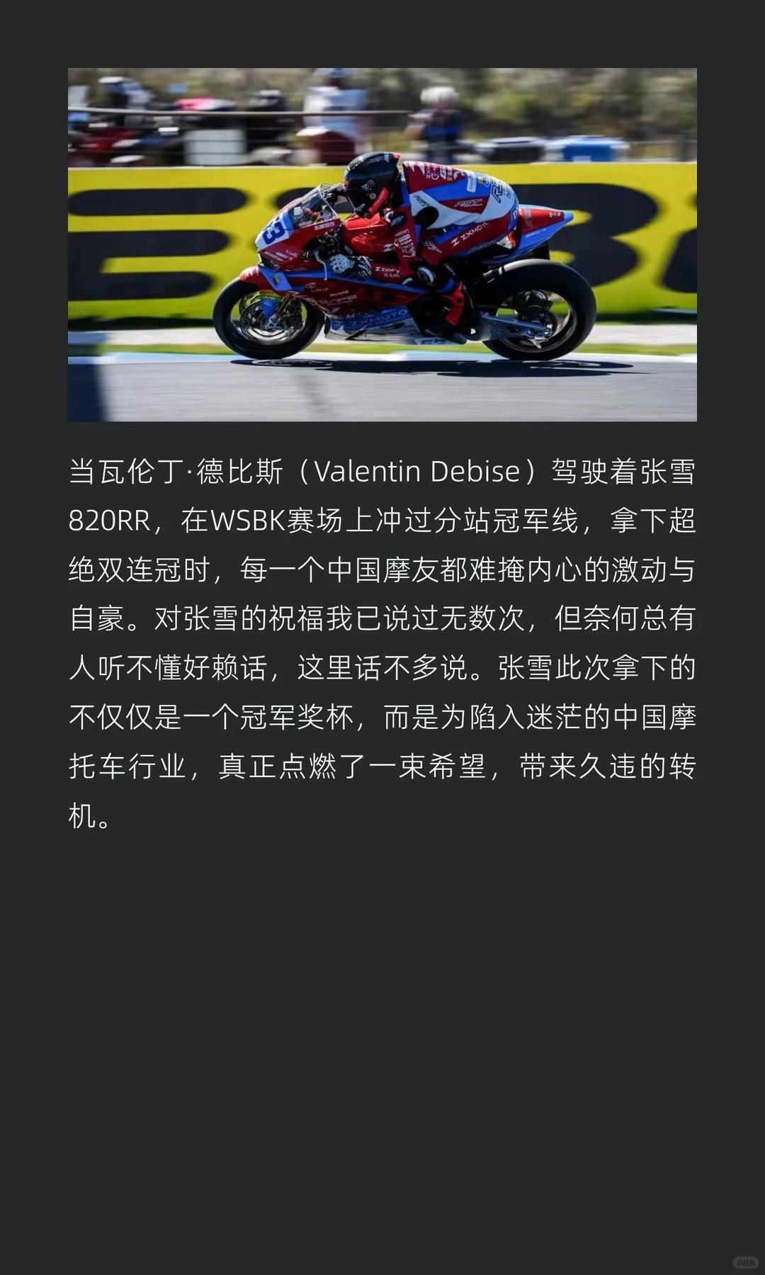 张雪赢来行业底气与转机,莫毁他拼命的荣光。张雪赢下的,是中国摩托车行业长久的底气与转机,别毁掉张雪拼命换来的荣光张雪夺冠 张雪登顶wsbk 张雪机车