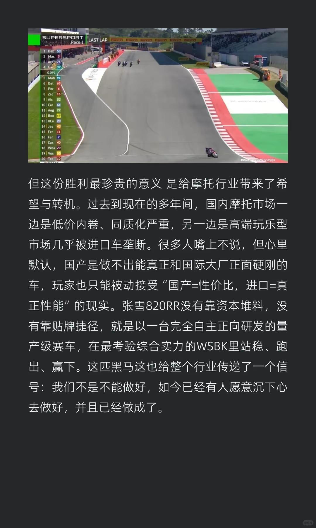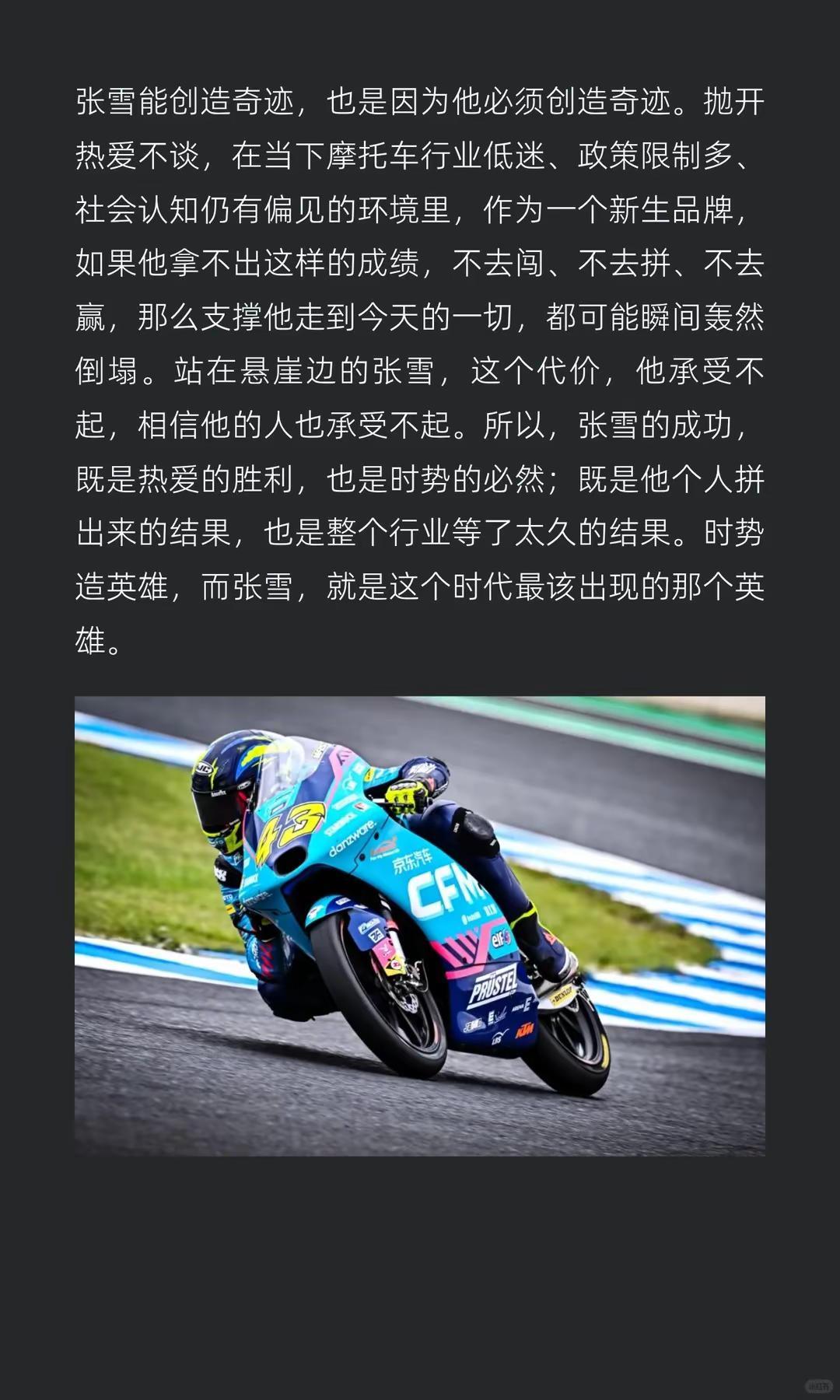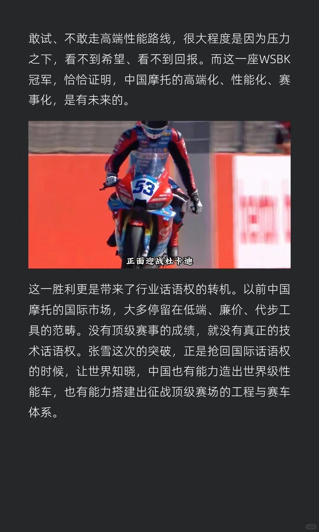 张雪赢来行业底气与转机,莫毁他拼命的荣光。张雪赢下的,是中国摩托车行业长久的底气