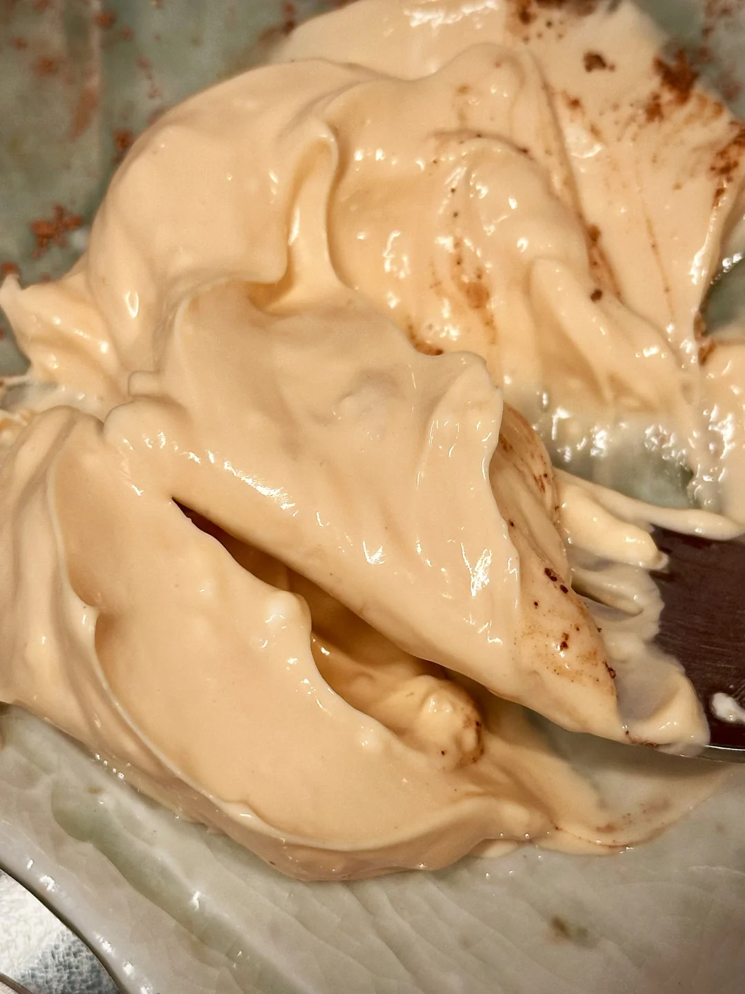 泰奶液和奶油奶酪打发到浓稠固体,就可以装盘享用啦!