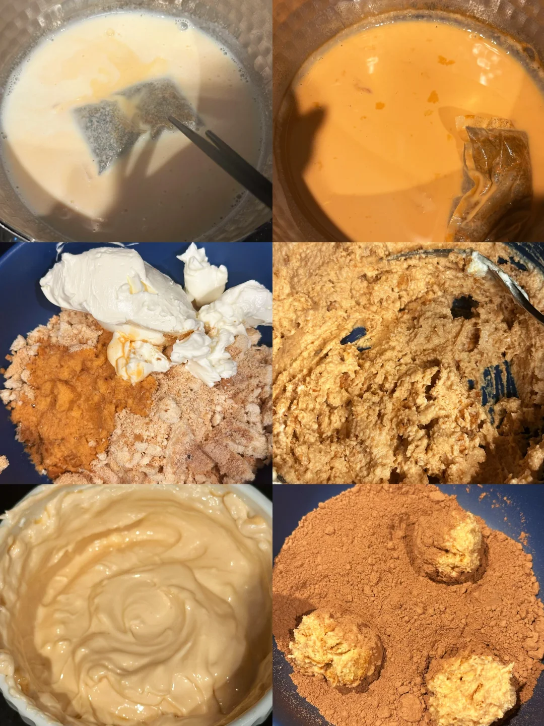 泰茶从东南亚街头饮品火成甜品届当红炸子鸡元素是有道理的,香气是真的很浓郁上头,颜色也很诱人。这次我在控制液体量的同时把泰茶味渗透进提拉米苏球和奶酪糊里,保证风味浓度。