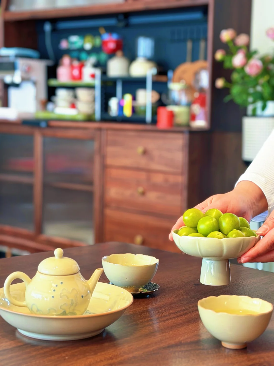 🍵宅家的快乐,煮一壶热茶,配一碟鲜果,在自己的小茶角里,偷得浮生半日闲。