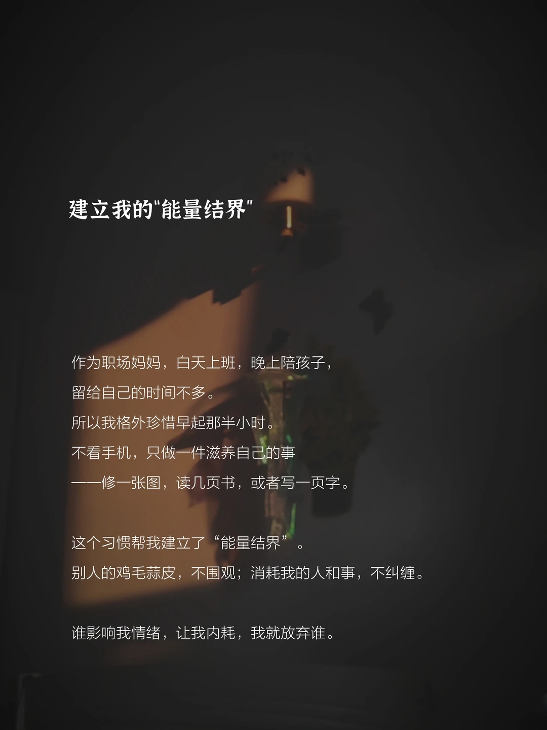 这个习惯帮我建立了“能量结界”。别人的鸡毛蒜皮,不围观;消耗我的人和事,不纠缠。