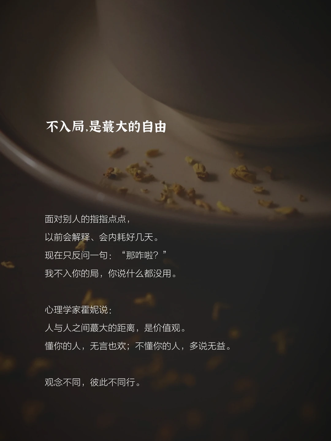 面对别人的指指点点,以前会解释、会内耗好几天。现在只反问一句:“那咋啦?”我不入你的局,你说什么都没用。