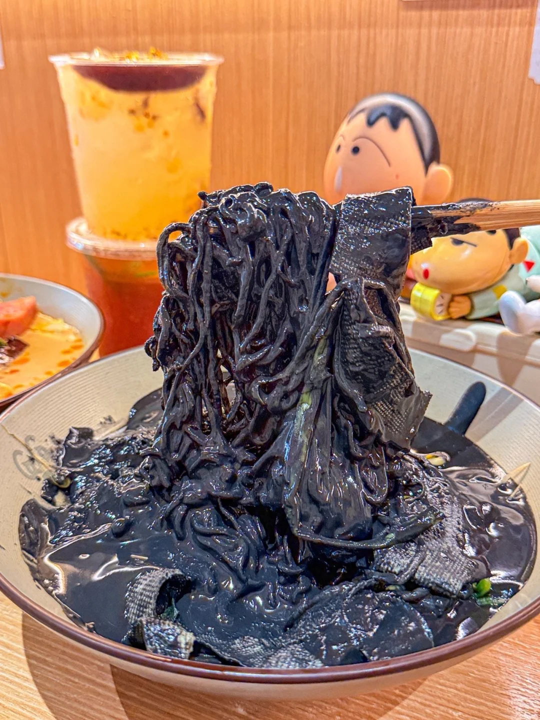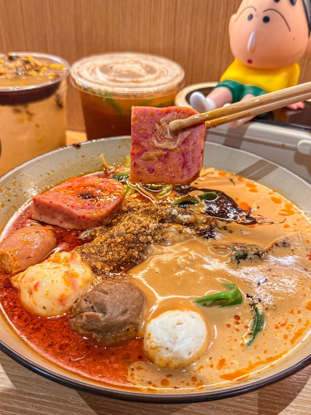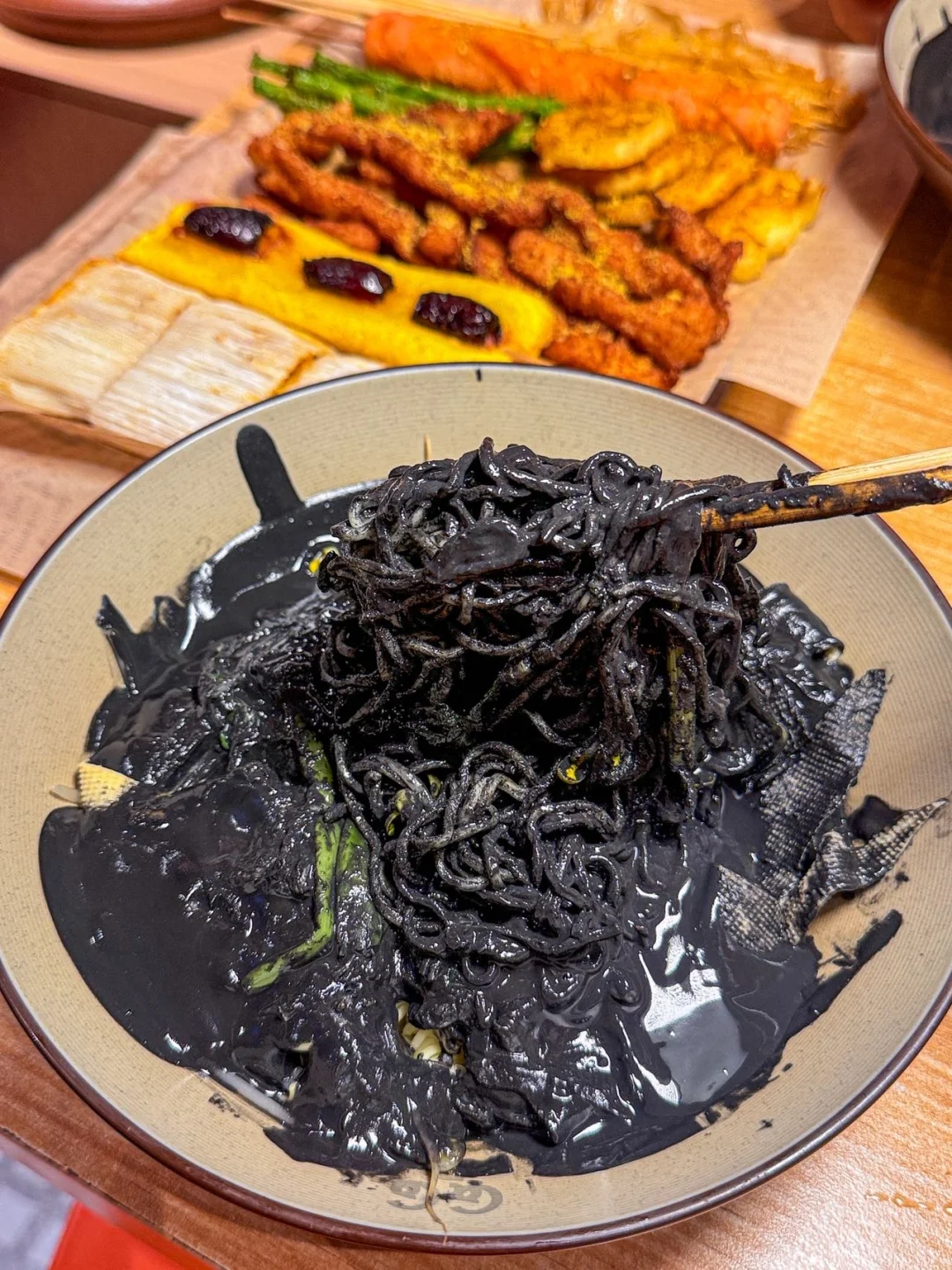 · 第一口:等等…麻酱和芝麻糊怎么这么搭!浓稠到拉丝的酱汁,裹满每一根面条,黏糊糊的口感里全是芝麻香和奶香,辣味反而成了配角🌶️✨