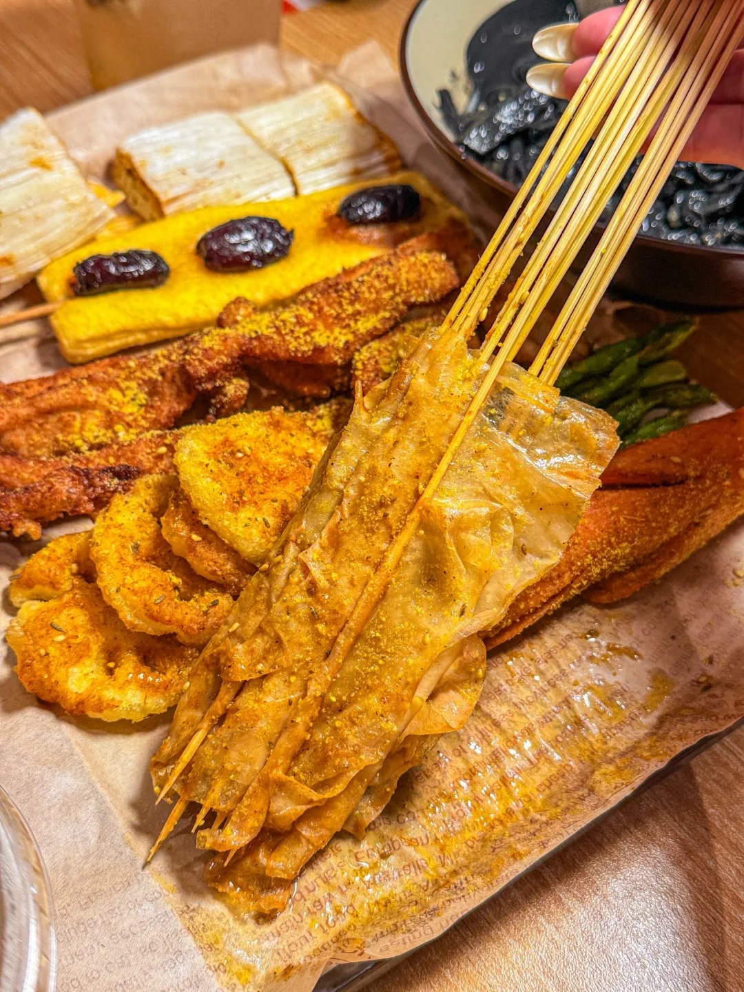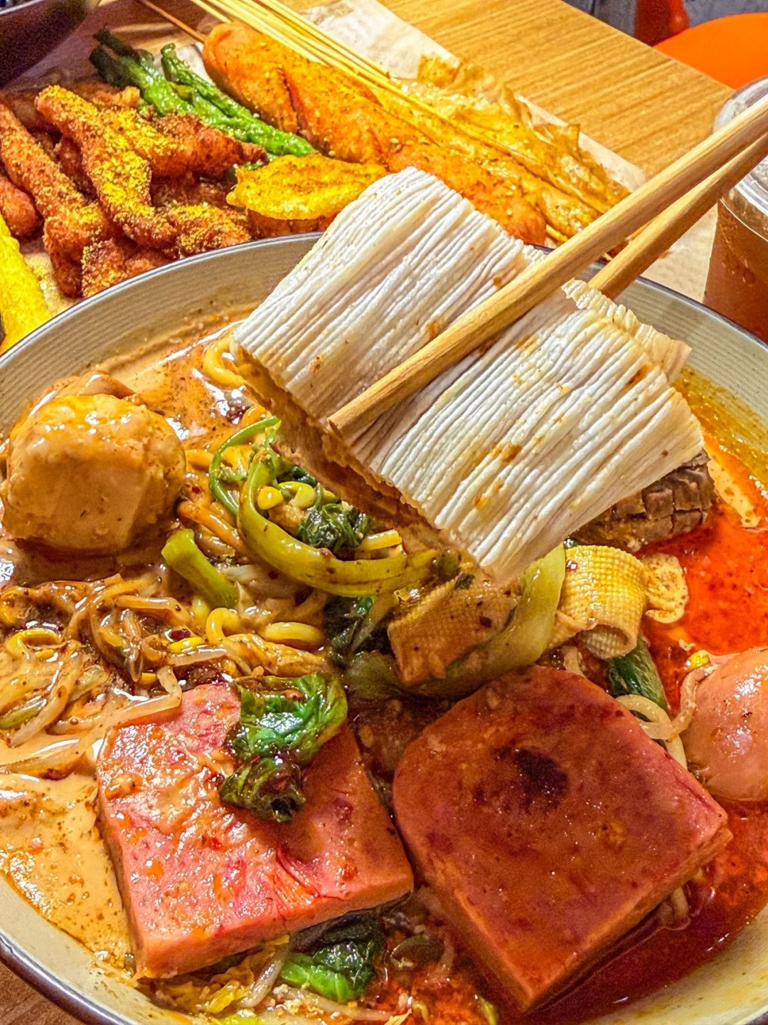炸冷面卷臭豆腐香到跺脚,再来一口冻梨气泡水,清甜解腻,直接原地封神!🙈