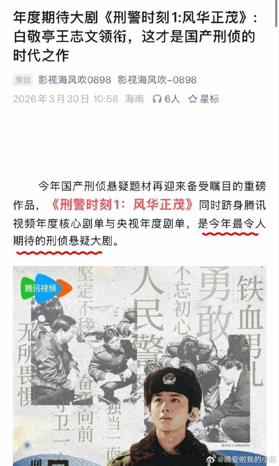 白敬亭刑警时刻被评为年度期待大剧,国产刑侦的代表之作