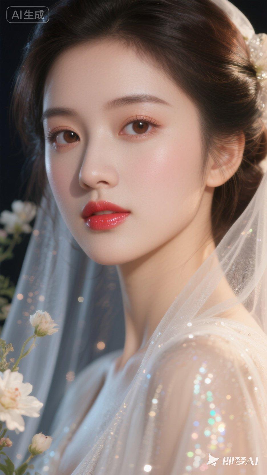 梦幻少女,优雅白纱,绽放如花。