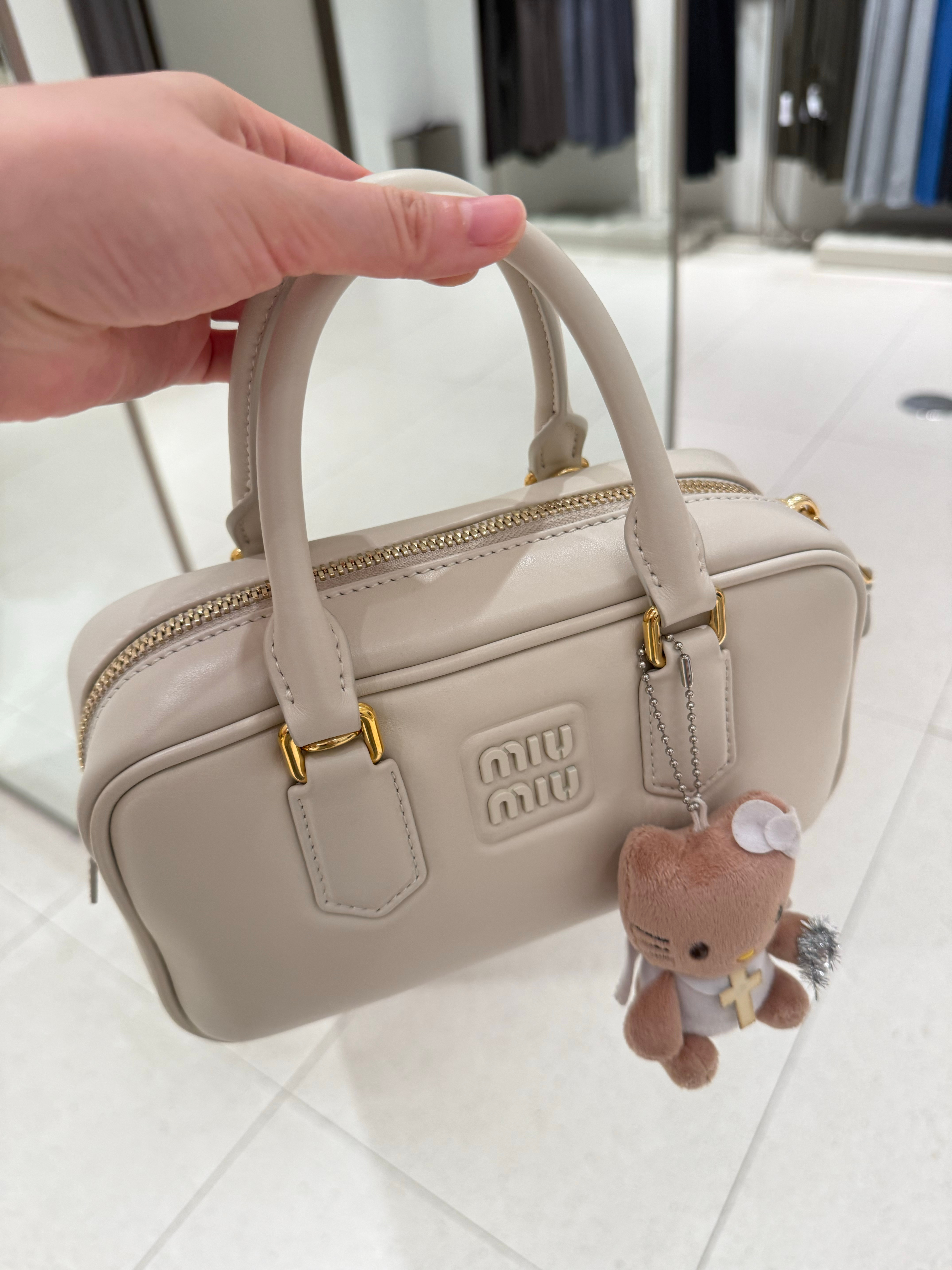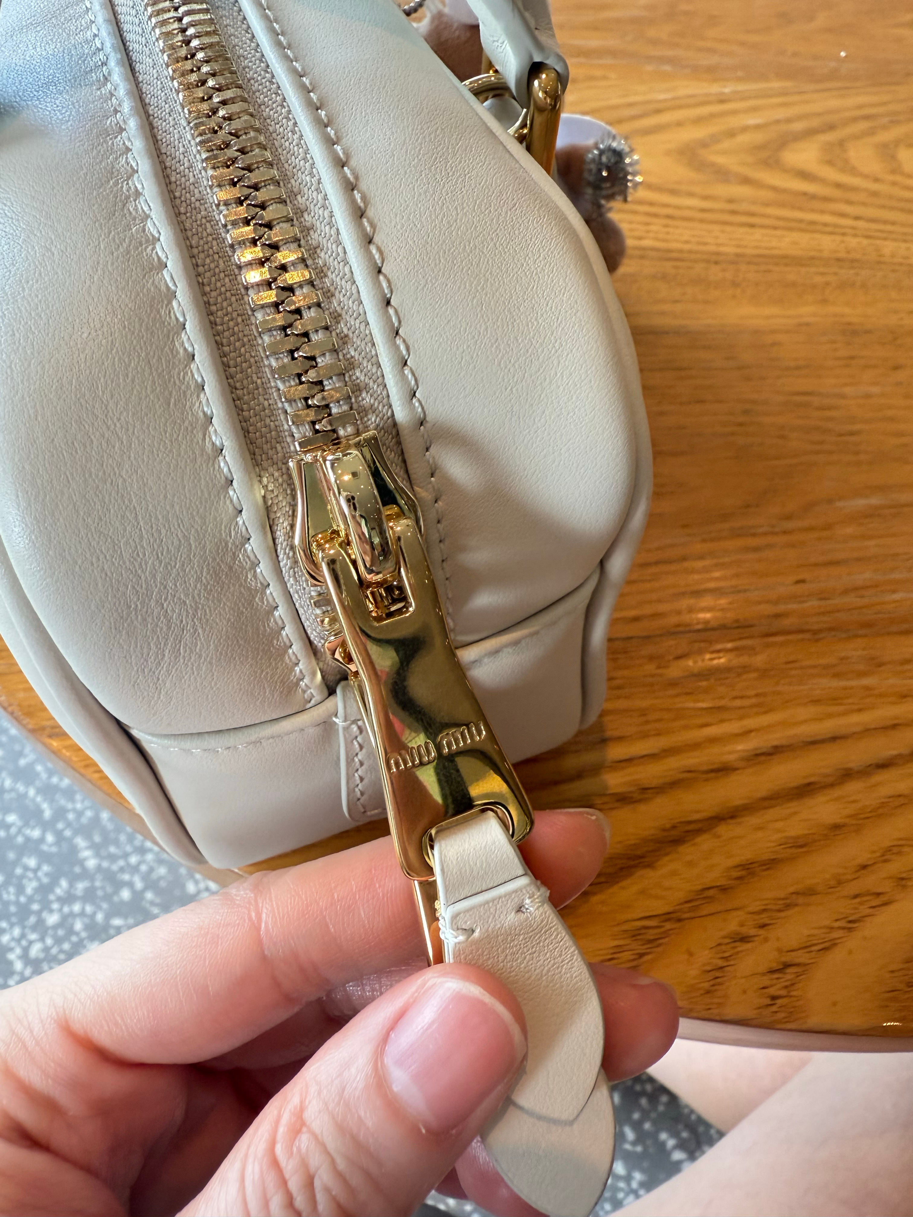 缪缪保龄球包测来了,在免税店看到这款回来买了个原厂芯片版,好牛逼,可以当Z品送人了,摸上去手感也是肉嘟嘟的,我又搜了下🍠的测评细节也对的上!!