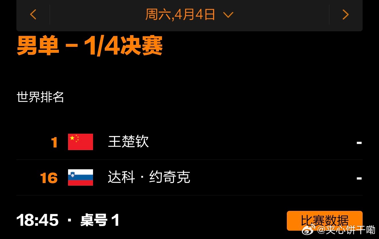 2026澳门国际乒联单打世界杯丨4月4日莎头赛程12:30 T1 孙颖莎🇨🇳VS汉娜·高达🇪🇬18:45 T1 王楚钦🇨🇳VS达科·约奇克🇸🇮