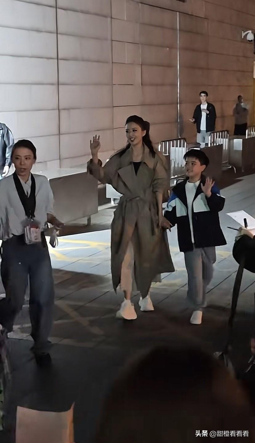 佟丽娅演出结束,带儿子一起下班了,等在门口的粉丝们一拥而上,佟丽娅抓紧带儿子往回走了几步跟大家说一会儿一起合影,可能也是怕大家太热情,出现拥挤,怕挤着孩子,不过当时她一句话就稳住了场面。