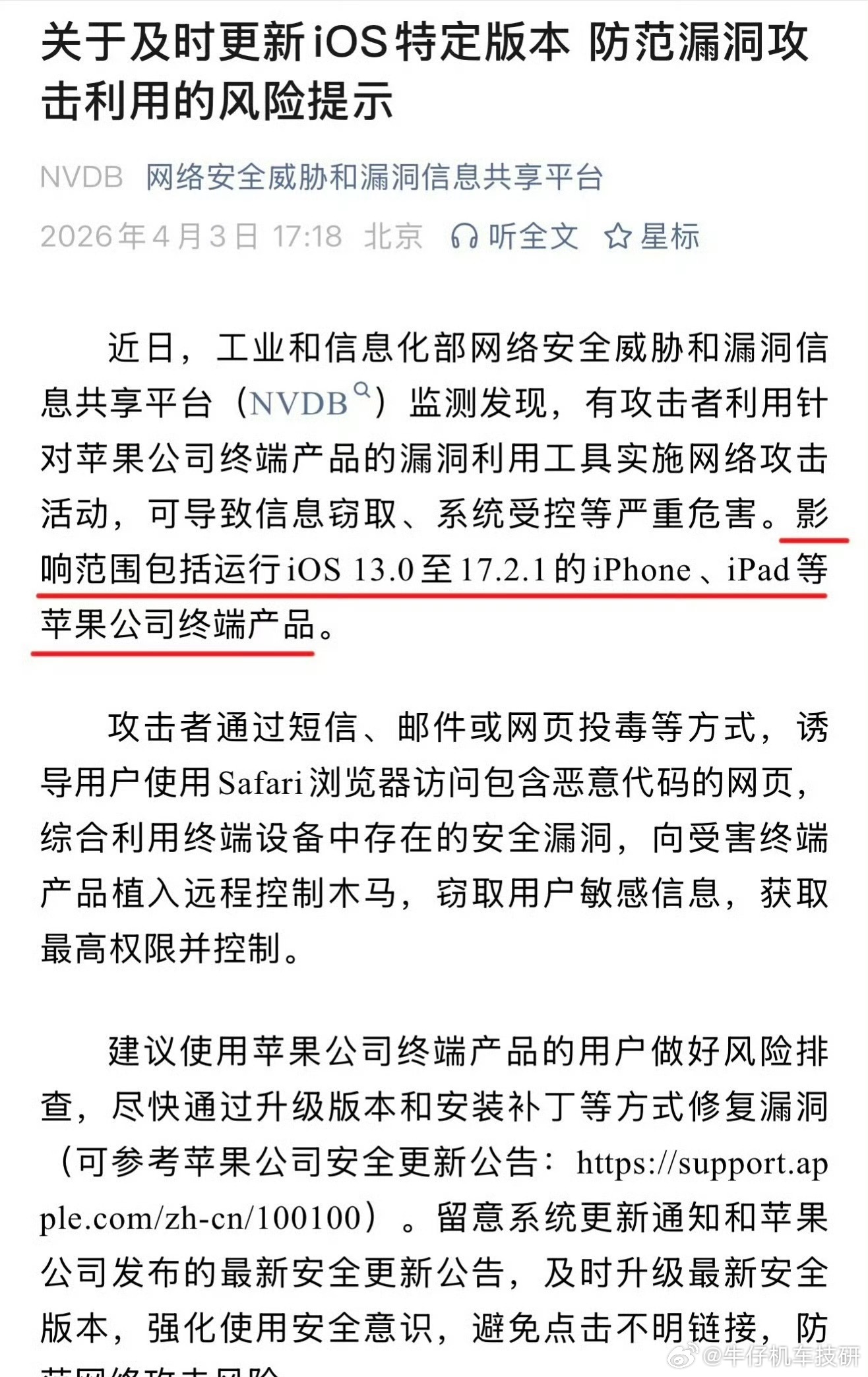 工信部紧急提醒苹果用户那些揣着旧系统不升级的人呀是不愿意接受新事物,这是一种人格体现,所以中毒而已,对他们无伤大雅,毕竟失去的比中毒更多。