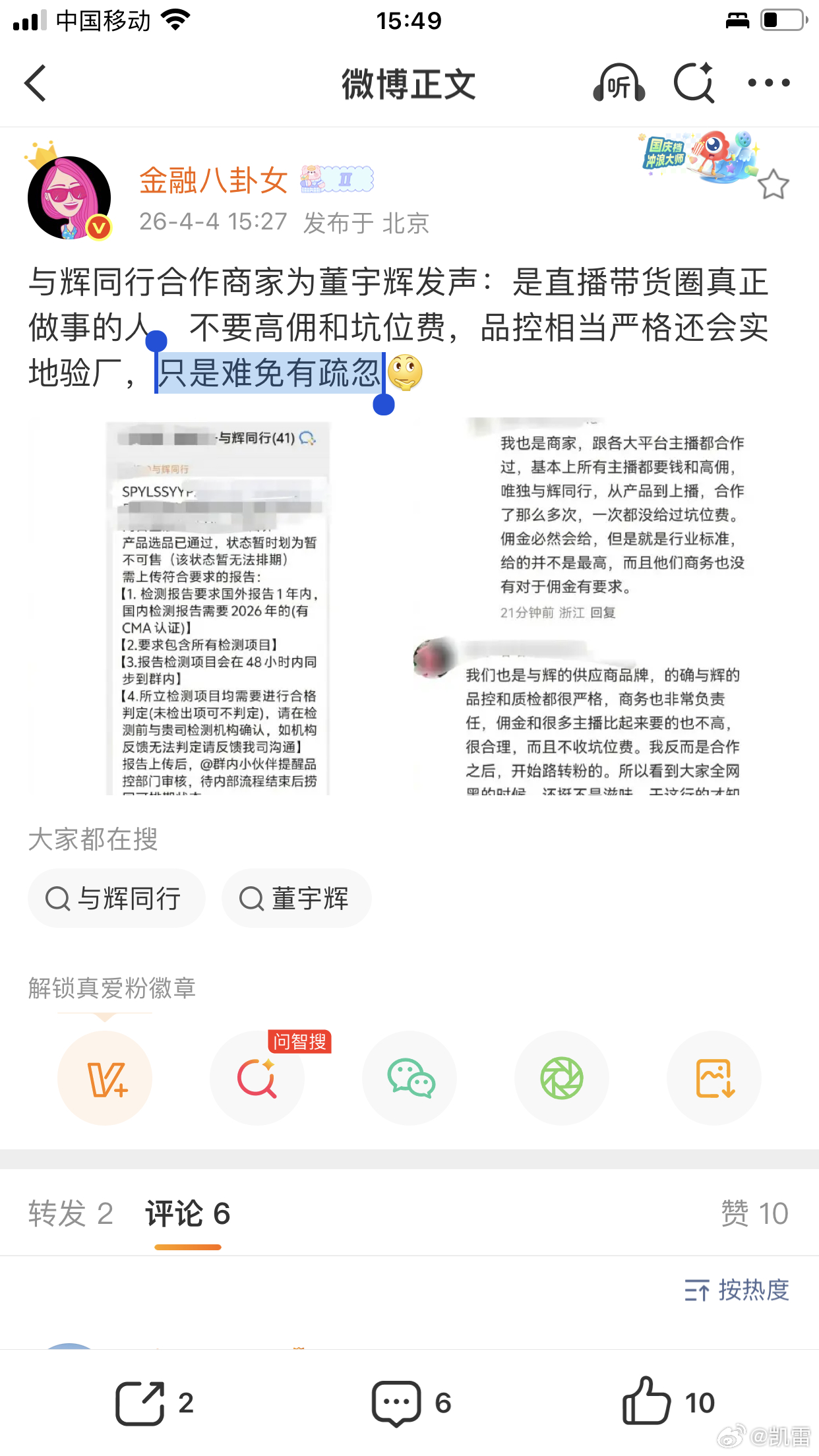 秒查澳州保健品宇辉只是难免有疏忽 董宇辉品控最严,只是难免有疏忽——不用出境、不须溯源,天大的难题Ai破解,一秒钟解决办法来了——大厨提控的不翻墙直查网址,秒查假货。