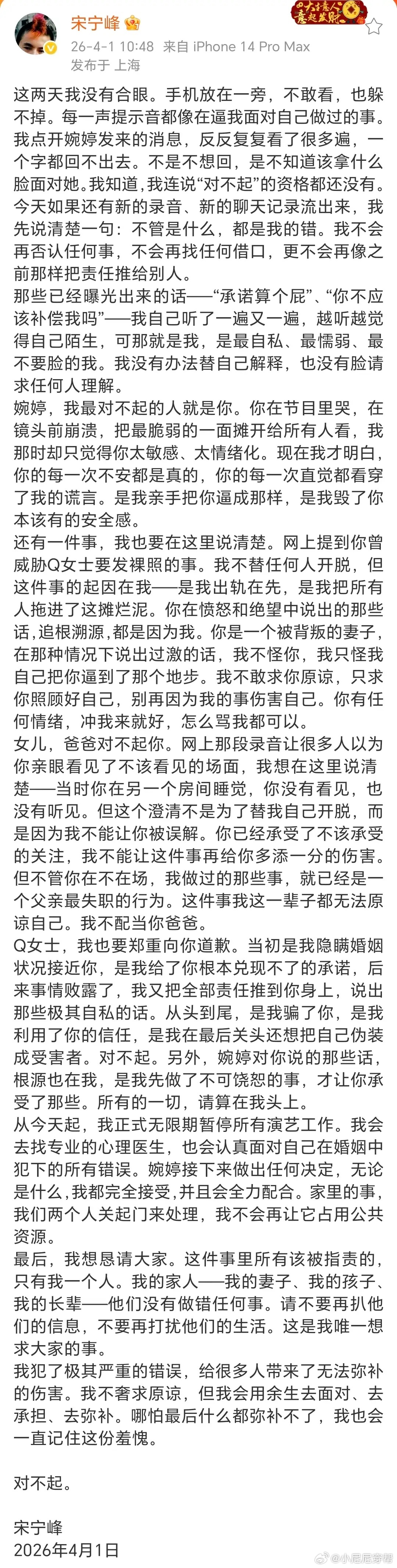 宋宁峰出轨对象Q女士回应:男方称已协议离婚,张婉婷两面三刀