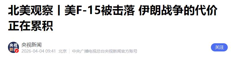 这次F-15E战机被击落,加上搜救时付出的额外代价,不仅让美军的损失进一步扩大,更打破了特朗普政府“战争即将低成本收尾”的谎言。