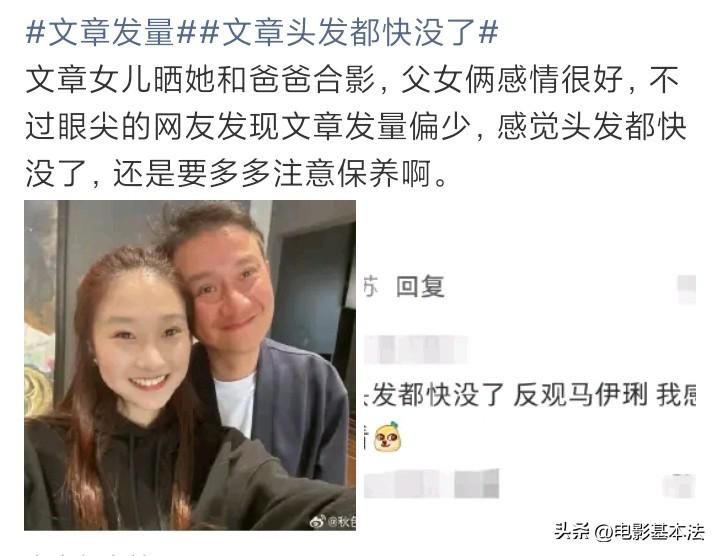 文章,头发都快没了? 4月4日,马伊琍前夫意外文章意外冲上热搜,这次不是因为他有什么新作品,也不是他在感情方面有新动向,而是因为一张他和女儿文爱马的照片。 照片中文章头贴着女儿,两人都是笑容满面十分温馨,但是文章的状态却让人十分意外,因为他眼窝深陷满脸沧桑,特别是头发比以前稀松了很多,有网友感慨: 感觉头发都快没了,反观马伊琍,却是越来越好看! 曾经的他顺极了,如今的他不但事业跌入谷底,面相和精神更是光速老去,看的人唏嘘不已,如果那时候他有现在这个心态,也不会崩成这样,事发前他演什么都透露着一股“哥就是牛笔”的倨傲。 人就是这样,总是失去了才会特别珍惜,这就是遗憾,这就是人生,人就匆匆一辈子,你说他后悔过吗,现在快乐吗? 坦白的说,如果他坚持到底娶姚笛,还能敬他是条汉子,现在只能唏嘘了……