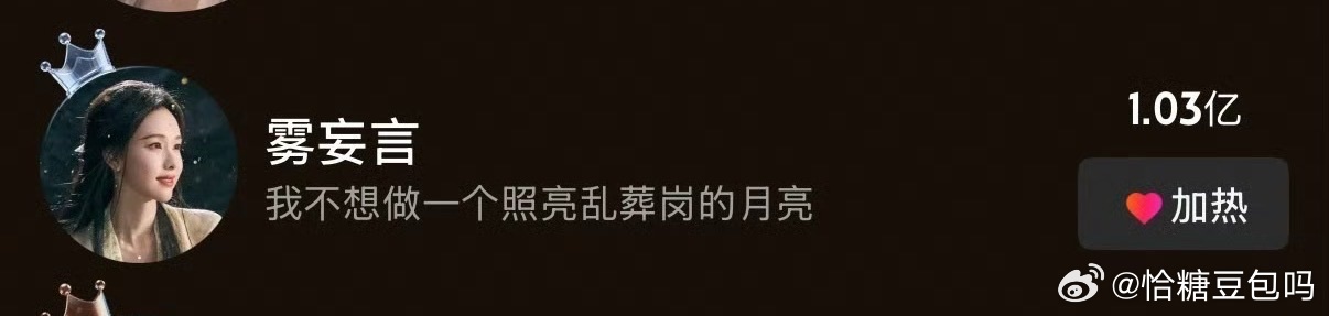 陈都灵雾妄言角色热度破亿这个小狐狸太会蛊人了!陈都灵演的雾妄言亦正亦邪,眼神戏张力拉满,开播四天热度破亿。无后援会全靠自发支持,23000+云包场宠粉,双平台双角色破亿,实绩实打实。